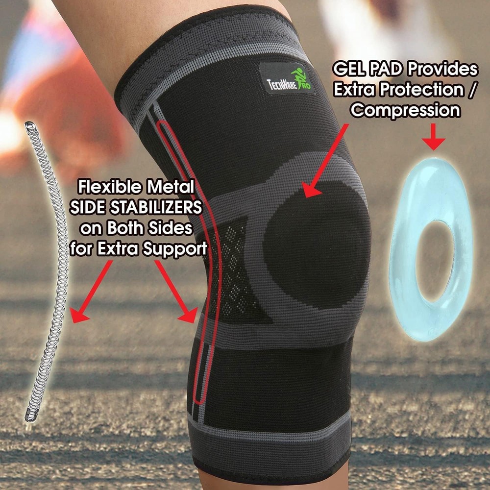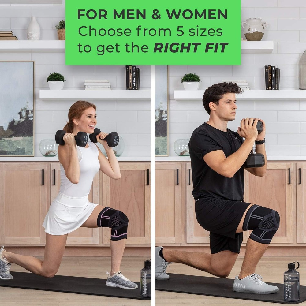 Makers of Quality Supports We applied 3D TECHNOLOGY to design a better KNEE COMPRESSION SLEEVE that provides the BEST FIT, SUPPORT AND COMFORT. * KNEE SLEEVE THAT OFFERS COMPRESSION AND SUPPORT - with 2 flexible spring stabilizers and a patella gel pad. * MAXIMUM COMFORT AND FLEXIBILITY - high quality 4 way stretch breathable blended fabric for everyday use or sports activities. Does not restrict movement. * START HEALING AND SPEED UP RECOVERY - with therapeutic warmth that reduces inflammation, promotes circulation and healing. * SLEEVE STAYS IN PLACE DURING MOVEMENT - non slip silicon strips that will keep the sleeve in place during all kinds of activities. * OPTIMIZED KNEE MOVEMENT - ergonomically designed to promote correct knee movement as to prevent injury. * PROFESSIONAL GRADE FABRIC - quality material that is durable, moisture wicking and made to last. * EASY TO FIT - Choose from 3 SIZES. Measure around thigh 5.5" above mid point of kneecap. Sold as a single unit - one knee sleeve per package. ENJOY YOUR FAVORITE SPORTS OR ACTIVITIES AGAIN. For Best Fit: Refer to the How to Measure Your Knee Sleeve Instructions Choose from five sizes for best fit: Measure both thigh and calf circumference 5.5” from the center of the patella; available in Small, Medium, Large, X-Large, and XX-Large; suitable for men and women More than just a compression sleeve: Stabilizer bars and patella gel pad add extra support and compression to the knee area for pain relief and injury recovery Comfort wrap support and pain relief: Ideal for everyday use; helps with meniscus tears, ACL, PCL, MCL injuries, swelling, arthritis, bursitis, tendonitis, and post-surgery protection; also prevents injuries and reduces inflammation Breathable knitted soft fabric with non-slip silicone strips: Ideal for cycling, tennis, CrossFit, volleyball, jogging, walking, hiking, soccer, Zumba, gymnastics, climbing, weightlifting, baseball, football, bodybuilding, running, exercising, and more