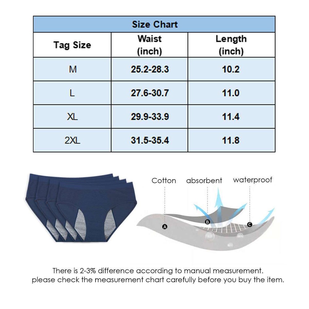 Product Description Specifications: Material: Fabric: 87% Cotton + 8% Nylon + 5% Spandex, Crotch: 82.2% Viscose Fiber + 17.8% Polyester Fiber Optional Color: Yellow, Grey, Blue, Black Optional Size: M, L, XL, 2XL Pattern: Solid Closure: Pull on Waistline: Mid Rise Fitting Type: Fit Style: Simplicity Care: Hand wash / Machine wash with a laundry bag in cold water. Features: · CONVENIENT PERIOD UNDERWEAR FOR WOMEN & GIRLS: Convenient period panty for your period protection, is great for light menstrual flow days and great to be used as a backup during heavy flow days. It can also be worn as a regular underwear and it also provides excellent protection for minor urinary leaks. · ABSORBENT & LEAK-PROOF EXTENDED CROTCH LAYER: The underwear is made with extra layers at the crotch area for a great absorbency to prevent leaks and stains. · ALL-OVER AIRHOLES: There are air holes all over the cotton panty for a good breathability and more wearing comfort. · ELASTIC WASITBAND & LEG CUFFS: Its elastic waistband and leg cuffs ensure a snug fit and prevent the panty from rolling up. · WASHABLE & REUSABLE: This period panty is made of quality cotton blend fabric, soft, stretchy, skin-friendly and comfortable, easy to wash clean, reusable and durable. Notes: * Due to effect of light, camera and monitors, the item’s real color may be slightly different. * Allow slight dimension difference due to manual measurement. * Thank you for your kindly understanding. WARNING for California Residents: This product can expose you to chemicals including Diisononyl phthalate (DINP), which is known to the State of California to cause cancer. For more information, go to: https://www.p65warnings.ca.gov/. Package Includes: 1 PC Women’s Period Panty (Others are NOT included) Payment Shipping Returns PayPal is easy and safe, and we only accept PayPal payment. Please do not hesitate to contact us if you have any questions of payment procedures. Sales Tax: California residents, please add 8.75% for sales tax. Ship To Services Handling time Insurance Tracking Number USA Standard Shipping 1-6 Not include With CANADA USPS First Class Mail \International 5-10 Not include With Items dispatched to buyer's PayPal confirmed address from Monday to Friday (weekend & Holiday excluded) after payment has been received. Please check your shipping address carefully before checkout. If you want to change the address, pls kindly contact us through ebay message within three hours after payment. Otherwise, any change information may be disregarded once dispatched. Postage includes packaging material, shipping label, handling fee and so on. Do not provide local pick up service. Customers must contact us within 7 days to make a refund for all non-used products and buyers should return package with paid shipping label to our warehouse within 30 days since the delivery date.Issurance fee, shipping and handling charges are non-refundable. All NON-Seller's Mistake(E.g buyer change idea,dislike item or buy wrong item)returns for refund or replacement must contact seller first ,then all the problem will be processed.On this case,the buyer are responsible for shipping and handling charge as well as return fee. Any quality problem happened within warranty time, buyer has an obligation to cooperate with seller to verify the item's problem,If need replacement or refund,buyer are responsible for all kind of return shipment. Warranty service is limited to normal usage, any other artificial damage (such as disassembling by user, connecting with non-compatible accessories, not use according to the instruction and any other accident damage.Any maintainance and refit without seller's confirmation and upgrade, crack and the natural scratches on the plastic surface and accessories etc) as well as warranty stick damaged are out of warranty. Please make sure the item is intact and quantity is complete before signing the package or the item will be returned at once. Seller will not responsible for any problems such as breakage and deficiency after buyer signed. Please make a note in a paper with your eBay UserID,purchased date and details of the issue you are experiencing. Payment PayPal is easy and safe, and we only accept PayPal payment. Please do not hesitate to contact us if you have any questions of payment procedures. Sales Tax: California residents, please add 8.75% for sales tax. Shipping Ship To Services Handling time Insurance Tracking Number USA Standard Shipping 1-6 Not include With CANADA USPS First Class Mail \International 5-10 Not include With Items dispatched to buyer's PayPal confirmed address from Monday to Friday (weekend & Holiday excluded) after payment has been received. Please check your shipping address carefully before checkout. If you want to change the address, pls kindly contact us through ebay message within three hours after payment. Otherwise, any change information may be disregarded once dispatched. Postage includes packaging material, shipping label, handling fee and so on. Do not provide local pick up service. Returns Customers must contact us within 7 days to make a refund for all non-used products and buyers should return package with paid shipping label to our warehouse within 30 days since the delivery date.Issurance fee, shipping and handling charges are non-refundable. All NON-Seller's Mistake(E.g buyer change idea,dislike item or buy wrong item)returns for refund or replacement must contact seller first ,then all the problem will be processed.On this case,the buyer are responsible for shipping and handling charge as well as return fee. Any quality problem happened within warranty time, buyer has an obligation to cooperate with seller to verify the item's problem,If need replacement or refund,buyer are responsible for all kind of return shipment. Warranty service is limited to normal usage, any other artificial damage (such as disassembling by user, connecting with non-compatible accessories, not use according to the