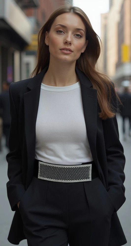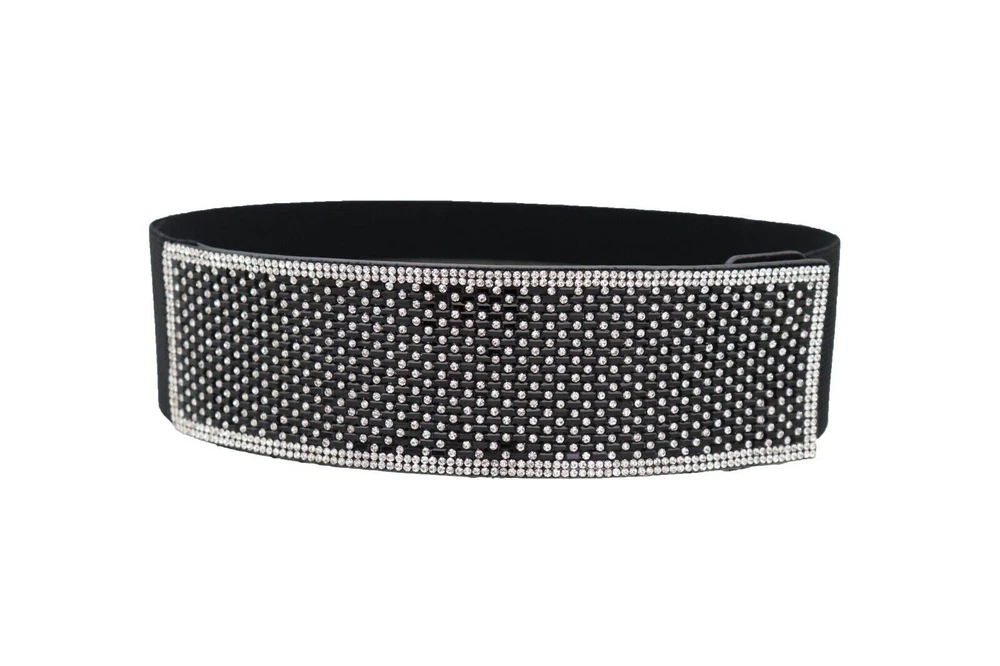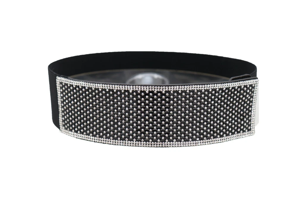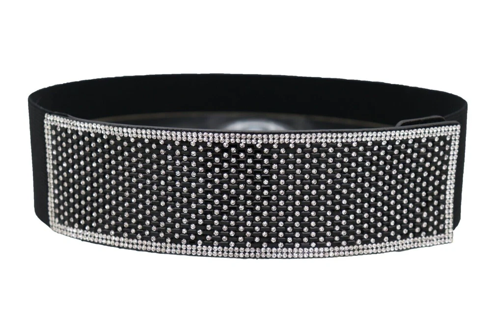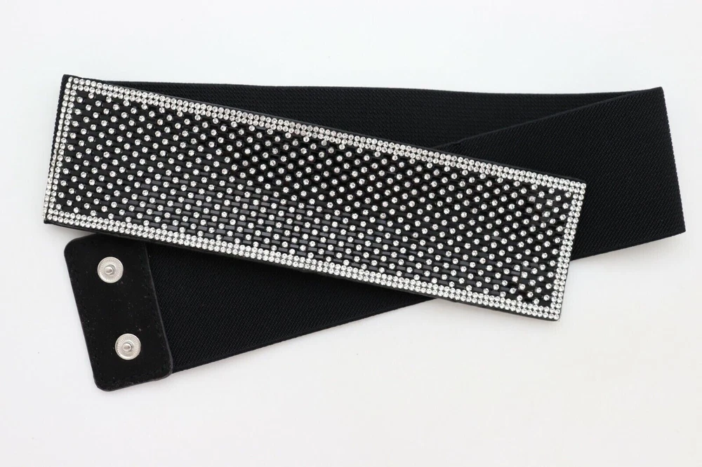 Women’s Wide Black Elastic Rhinestone Waist Belt – Stretch Bling Cinch Belt for Dresses, Gowns, Party Looks & Night Out | Adjustable Snap Closure (Fits Sizes S–M) ✨ Dazzle ‘Til You Drop – Shine bright like a diamond (literally) with this wide waist belt covered in sparkling silver rhinestones. Whether you’re headed to a red carpet event or just brunch that feels like one, this belt brings the glam. 🔥 Stretchy, Snatched, and Secure – Designed with a high-quality wide elastic band, this cinch belt hugs your waist without suffocating your style. It’s comfy, flexible, and oh-so-forgiving. 💃 Statement Plate Buckle – Featuring a long rectangular front panel encrusted with rhinestones and black beading, this belt gives “main character energy” every time. Pair it with gowns, blazers, jumpsuits, or dresses for that instant wow factor. 📸 From Day to Slay – Whether you're at work, a wedding, date night, or TikTok-ing your outfit of the day (#OOTD), this versatile belt upgrades any look from basic to iconic. 🎁 One-Size Magic – Adjustable to fit women’s sizes Small to Medium (Waist approx. 28"–36"). Snap-button closure for easy wear. Because who has time for complicated buckles? Ladies Fashion Style Sexy Belt - day or night classic look or party time Brand new sexy fun and edgy fashion special and unique stylish belt Ladies Fashion Fancy Casual Dressy Style Belt Special Style Day Night Evening Party Or Work Fashion Belt Style : Fashion / Waist or Hip Condition : Brand New Color : Black elastic waistband + silver rhinestones + black beads Size: One Size Belt - Adjustable Can Fit Size Small - Medium Waist Size: About 28" - 36" Belt Width : Up to 2 4/8 Buckle Size: 8 2/8" X 2 2/8" Very Special Fashionable Belt Beautiful For Every Day And For A Going Out Night.