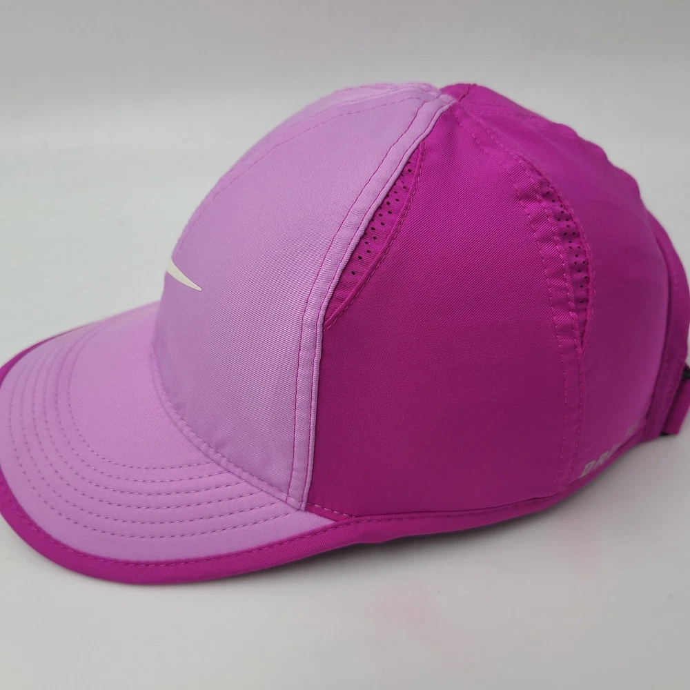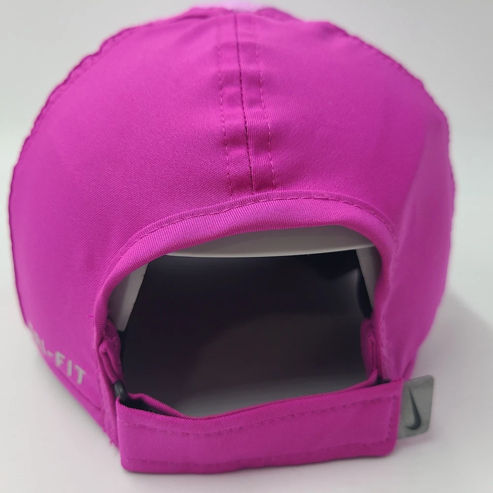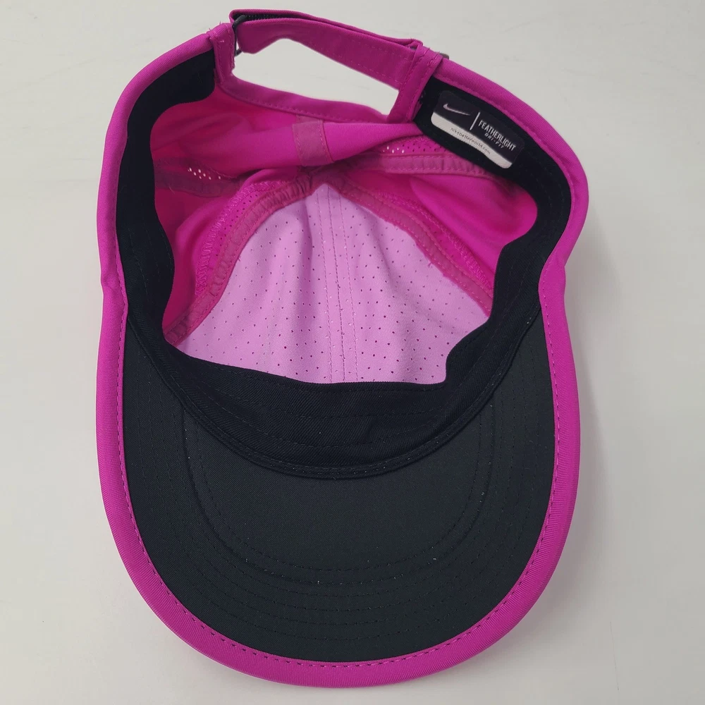 Has some stains/discoloration on the brim and front as seen in photos. Women Nike Hat Adjustable Pink Featherlight Dri-Fit Running Golf Outdoors Hike. Condition: Please review all photos for exact condition, wear, and details. Any visible flaws will be shown clearly in the photos. All hats are stored in a smoke-free environment. Shipping: All hats are shipped in a box. Every order is shipped out within 1 business day with a tracking number. Cleanliness: All hats are cleaned and sanitized to meet site standards prior to taking photos. Please message me if you have any questions or concerns. I answer most messages very quickly. Thank you!