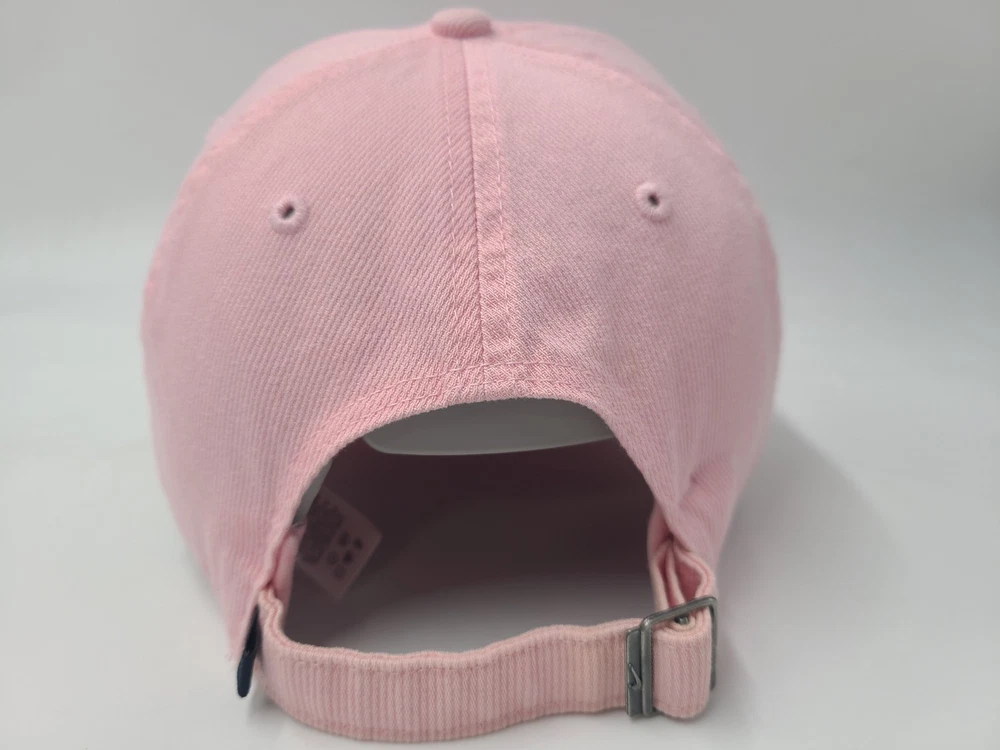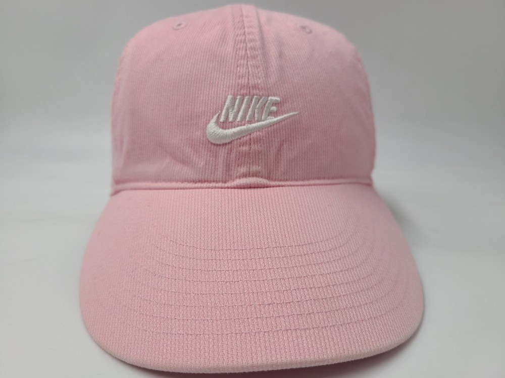 The tag says one size fits all, but it seems best suited for smaller sized heads. Also has some stains/discoloration on the brim and underneath the brim as seen in photos. Women Nike Strapback Adjustable (Fits Small) Hat Cap Cotton Swoosh Pink White. EACH ADDITIONAL HAT PURCHASED IS ONLY $1 ADDED SHIPPING!