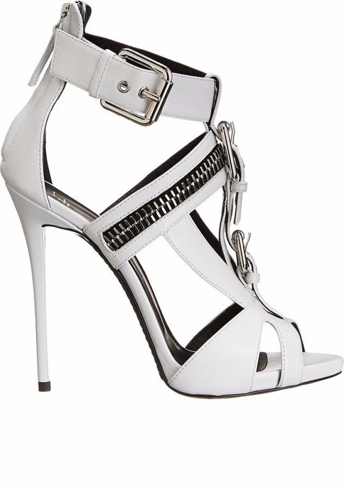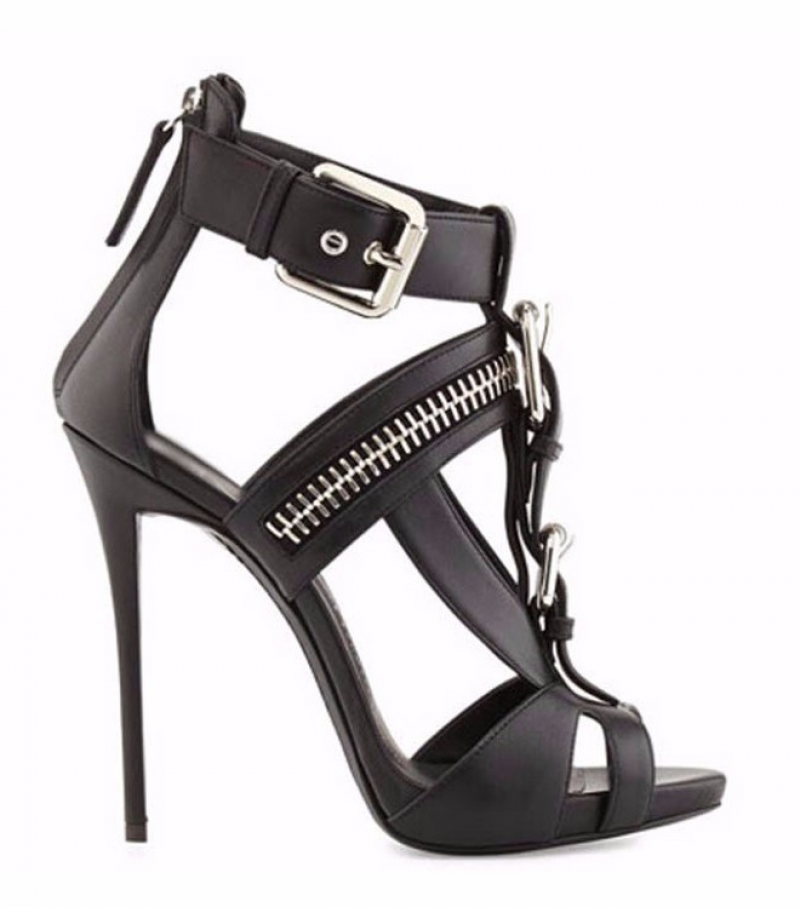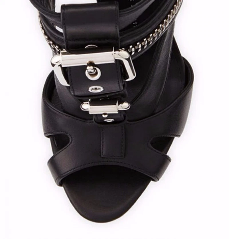 Women Peep Toe Stiletto Sandals High Heel Metal Buckle Zipper Punk Style Boots