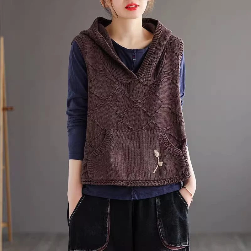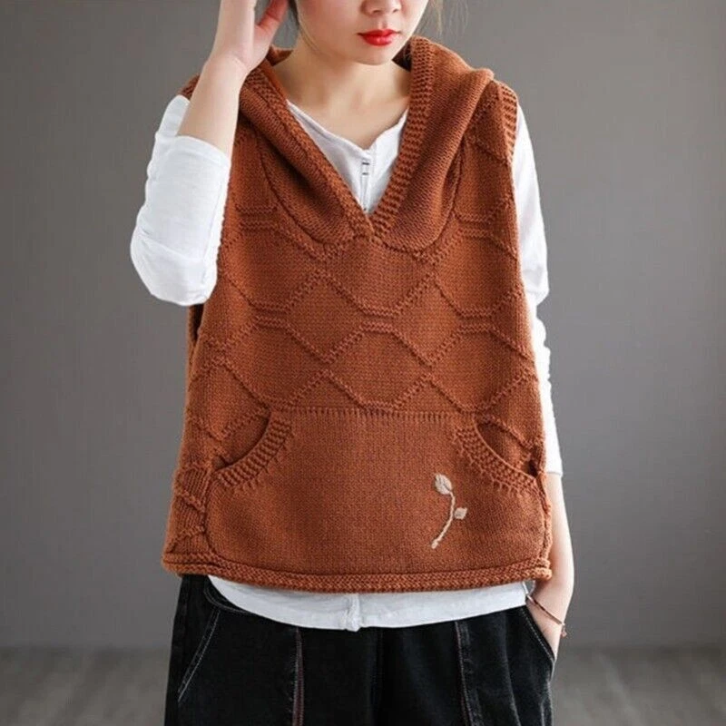 Women Pullover Hooded Vest Waistcoat Knit Tank Top Sleeveless Jumper Sweater