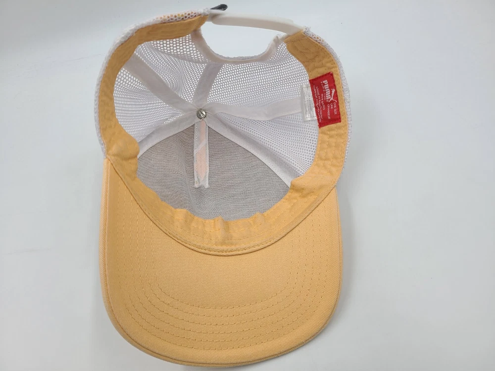 Has some stains on the front as seen in photos. Women Puma Mesh Trucker Snapback Hat Cap Baseball Soccer Outdoors Orange White. EACH ADDITIONAL HAT PURCHASED IS ONLY $1 ADDED SHIPPING!