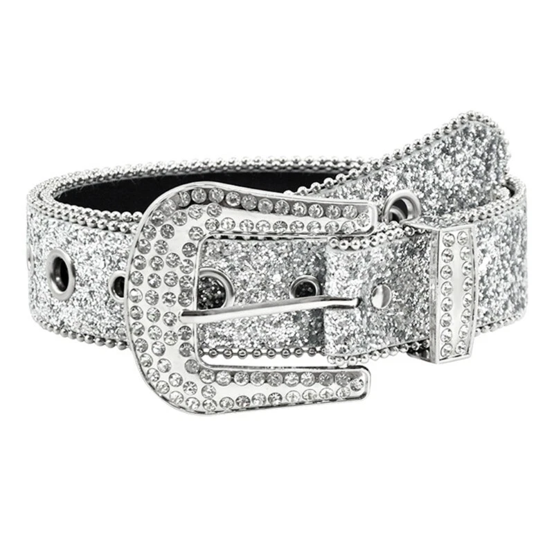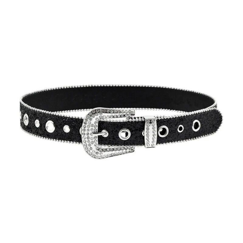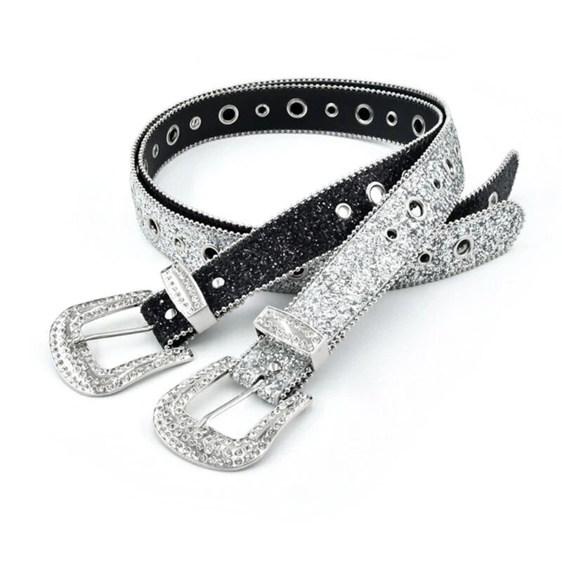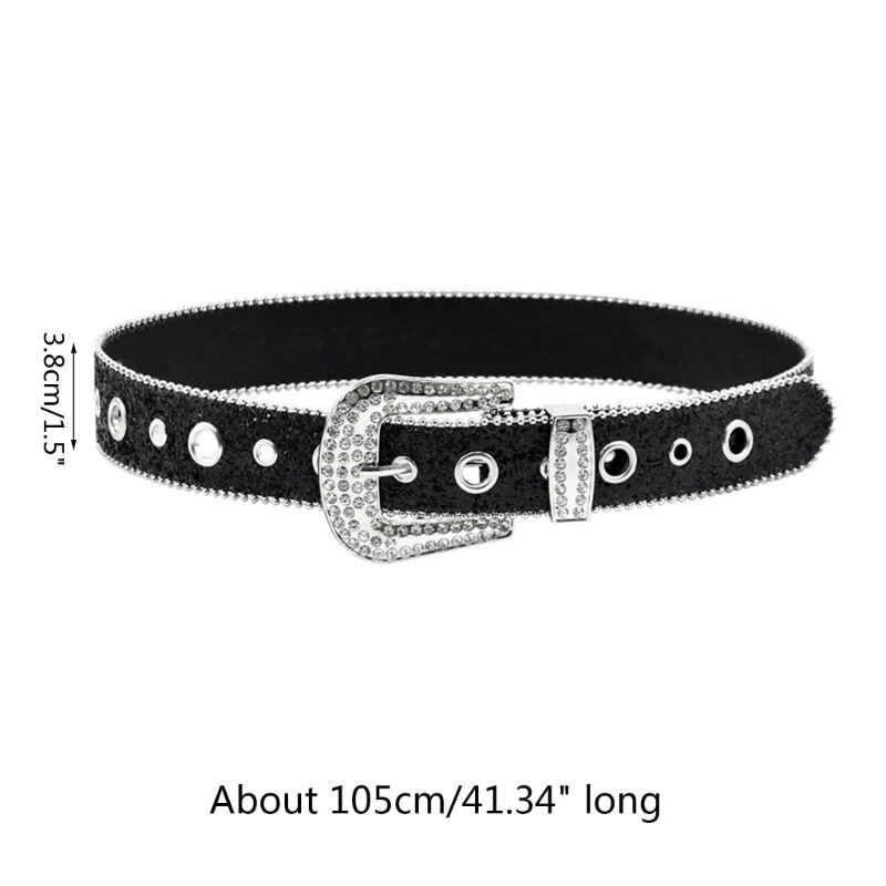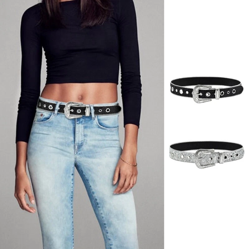 Women Rhinestone Belt for Dress Crystal Waist Belt Shinning Pin Buckle Belt Features: this women for rhinestone belt faux-leather, the material and definite process makes any item reliable, comfortable and durable. Rhinestones this gorgeous for rhinestone belts with vintage adjustable buckle, which are very and eye-catching, exquisite and beautiful, accessory to the cowgirl look. great choice for all cowgirls. Occasion: women for rhinestone belts are for formal or casual wear in any season and for all occasions and are also for everyday wear. its for wonderful family, lovers and for every holiday, such as birthday party, Valentine day, Halloween, Thanksgiving, Christmas, Fashion waist belt can be suited with your any clothing. It can highlight your and sexy body, make you looks more confident and in the crowd. Specifications: Faux-leather, Alloy, Rhinestone Size: Approx. 105x3.8cm/ 41.33x1.49in Color: Black, Silver Package Includes: 1pc Shinning Rhinestone Waist Belt note: 1. Please allow 1-2cm errors due to manual measurement, make sure that you do not mind before you order. 2. Due to the difference between different monitors, the picture may not reflect the actual color of the item.