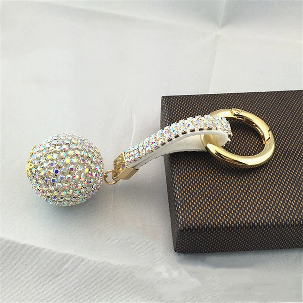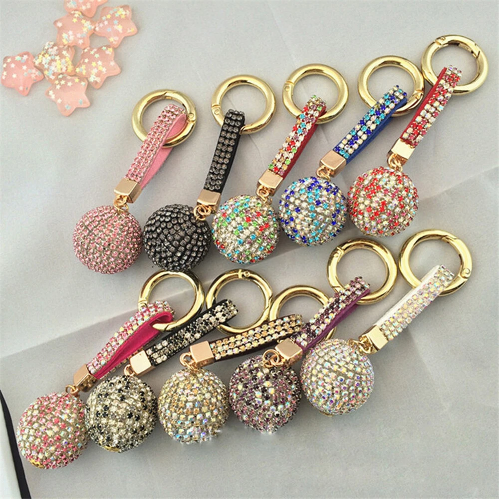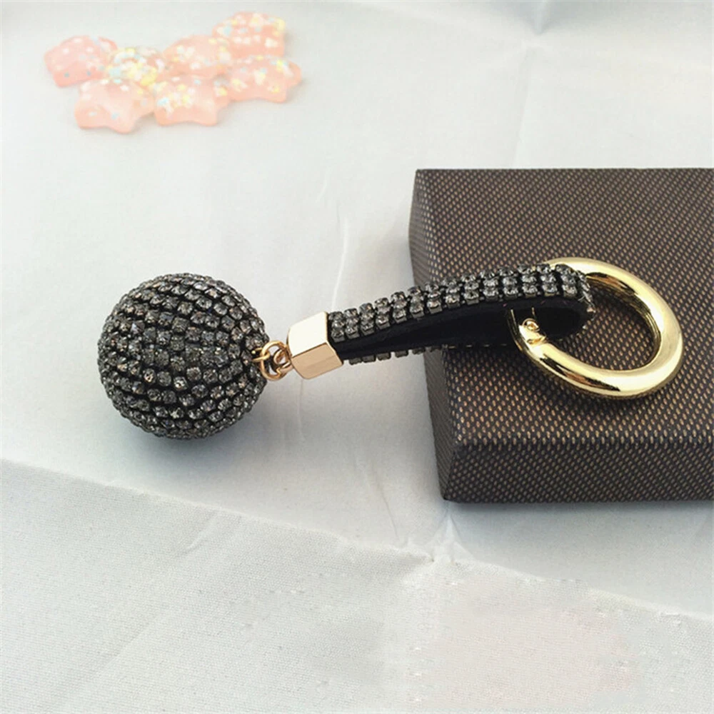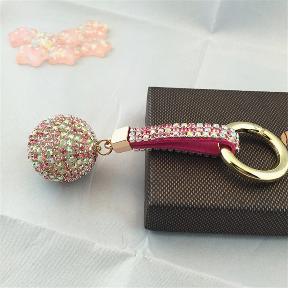 Women Rhinestone Leather Strap Crystal Ball Car Keychain Charm Pendant Key Ring Specifications: Fashion, simple, stylish, and high quality. A very good gift for yourself or your friend. Feature: Pendant material: Korean velvet, alloy Color: pink, purple, blue, rose, gray, etc. Size: about 10cm Notes: Due to the light and screen setting difference, the item's color may be slightly different from the pictures. Please allow slight dimension difference due to different manual measurement. Package Includes: 1*key ring