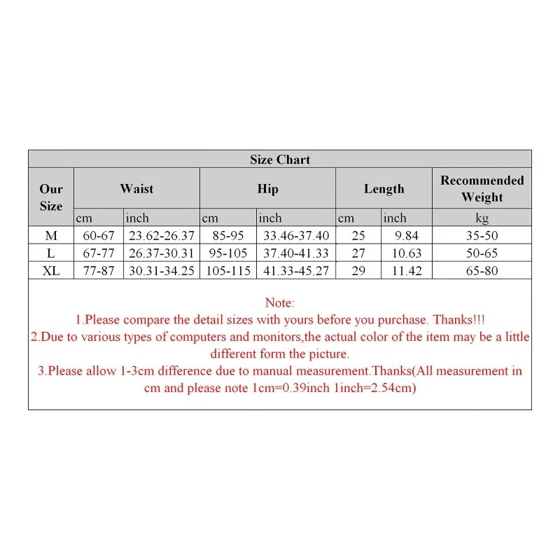 Description: Features: and high high nylon materials, smooth, breathable and comfortable, soft and easy to wash. waisted, elastic waistband, hollow out floral lace, seamless scalloped solid color, cotton crotch. Good hygroscopicity and elasticity, good for daily wear. You can wear anything from jeans to dress. It is also amazing choice for your girlfriend or wife for birthday's, Christmas, anniversary and so on. Versatile Occasions Great for Wedding Night, Anniversary, Bedroom, Bathroom or every night. 1 underwear only, other accessories in the picture are not included! Specification: Nylon Optional Color: Black, Red, Wine Red Size: for M/L/XL(Chinese Size,follow the size chart to please) Size:M Waist:60cm-67cm(23.62inch-26.37inch) Hip:85cm-95cm(33.46inch-37.40inch) Length:25cm(9.84inch) Recommended Weight:35kg-50kg Size:L Waist:67cm-77cm(26.37inch-30.31inch) Hip:95cm-105cm(37.40inch-41.33inch) Length:27cm(10.62inch) Recommended Weight:50kg-65kg Size:XL Waist:77cm-87cm(30.31inch-34.25inch) Hip:105cm-115cm(41.33inch-45.27inch) Length:29cm(11.41inch) Recommended Weight:65kg-80kg Quantity: 1 pc Warm prompt: 1.Asian people size is 1 or 2 sizes smaller than European and American. 2.Please note that low temperature washed,do not and place under the blazing for sun for quite a long for time. 3.As different measuring methods,it will occur 1-3 for cm deviation about the items,please ensure that it is okay for you before ordering. 4.Because of different monitors and lamplight,the picture may not reflect the actual color of the item,really thank you for your kind understanding! Package includes: 1 x Underwear(without retail package)
