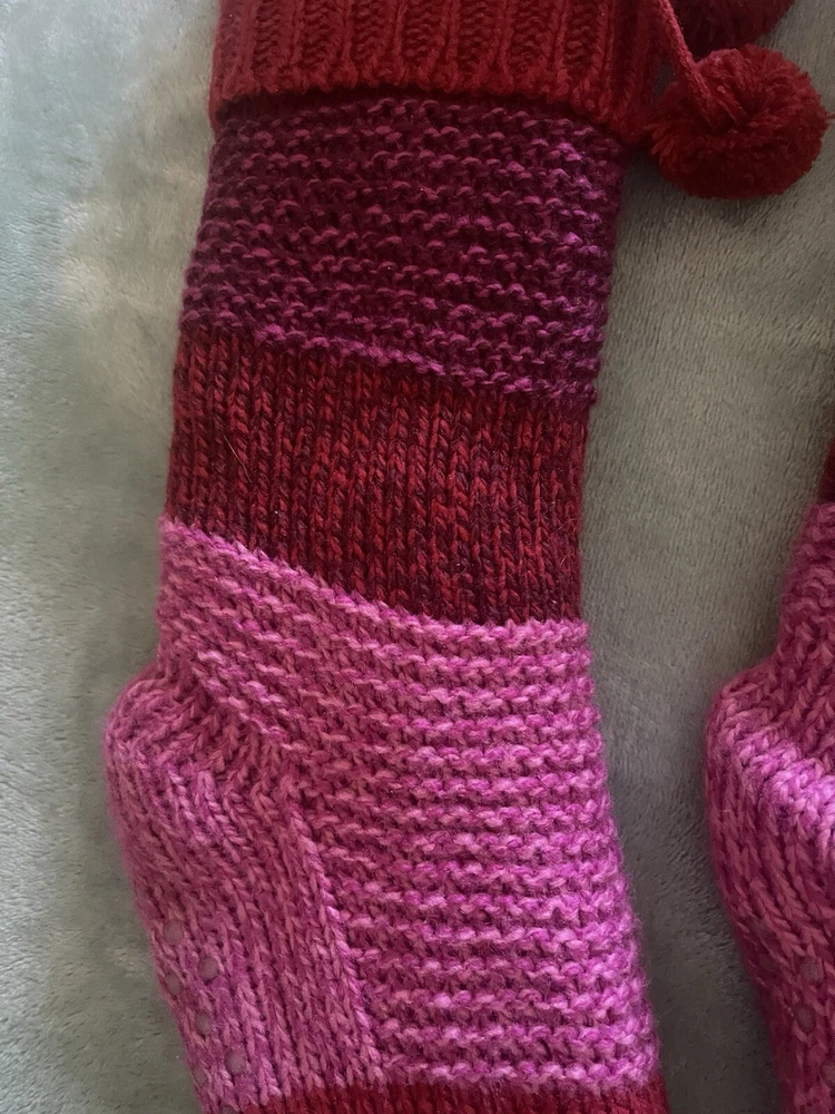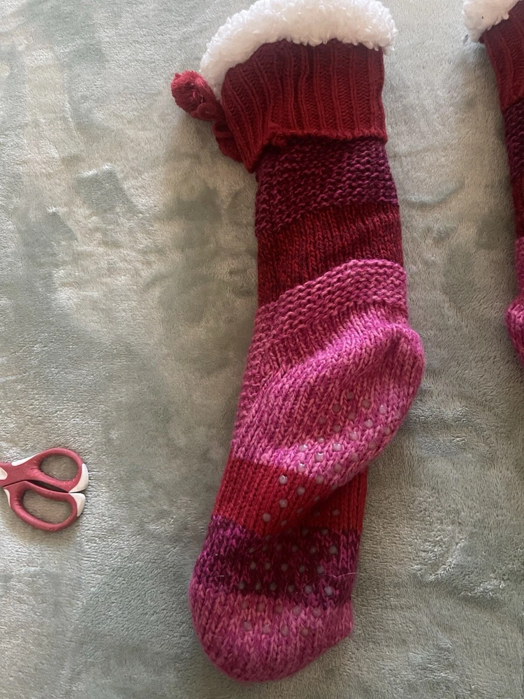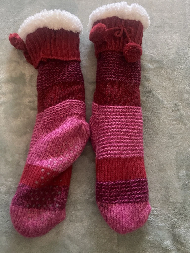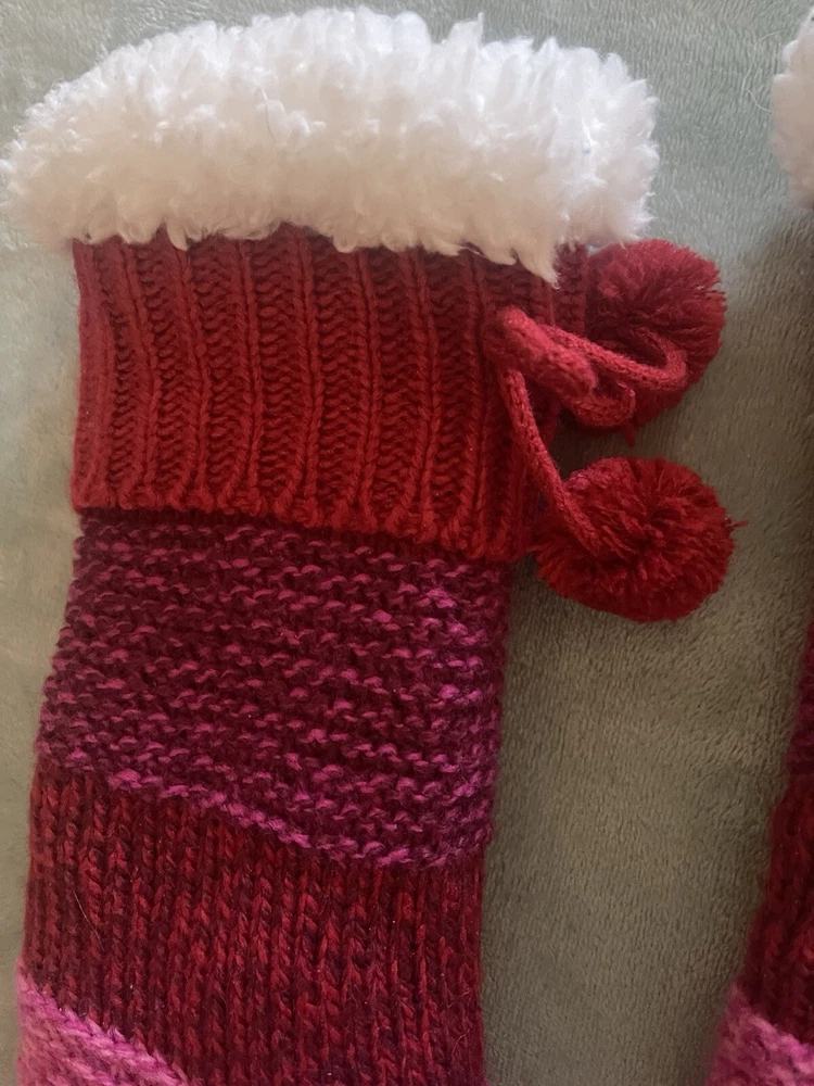 Stay cozy at home with these NWOT Women Sherpa Fleece Thermal Fuzzy Warm House Slipper Socks. Perfect for walking and lounging around the house, these mid-calf socks feature cushioned, lightweight, and non-slip designs that provide thermal warmth. The knit socks are machine washable and come in a vibrant red/pink colors with a classic and colorful theme, making them a perfect for cold weather. Never worn. The socks are made of high-quality fleece/knit material and have a one-size medium fit that is suitable for all women. They also have foot grips that ensure ultimate comfort and breathability. Whether you're looking for a perfect gift or treating yourself, these bed/slipper socks are a must-have for the winter, fall, and spring seasons. Ships Fast! Thanks for Looking!