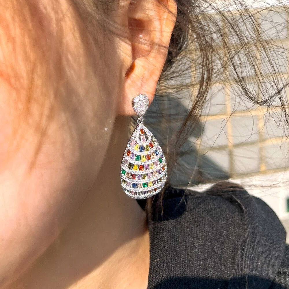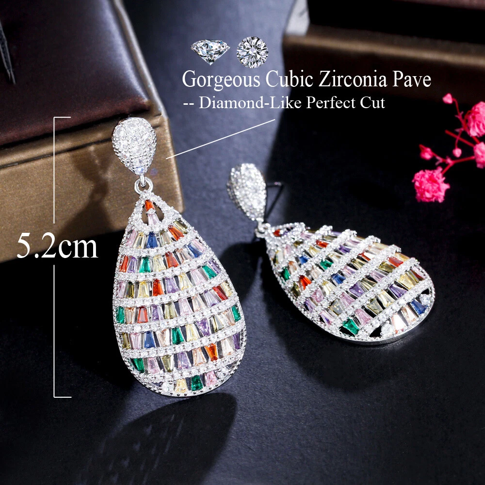 Women Silver Plated Multicolor Cubic Zircon Long Water Drop Dangle Earrings Gift There’s an old saying that: Jewelry is woman’s best friend. And one appropriate luxury jewelry helps to spice up your charm and beauty. And here’s the reason why you choose us: ★ We adopts high-grade Cubic Zirconia, which displays pure and fascinating color; ★ All our items are Elaborate, Gold Plated (white gold plated/yellow gold plated/black gold plated), by which the texture is smooth and with fancy look, and will be appropriate for so many occasions; ★ Our items are with Exquisite Design, which shows your excellent taste, and could catch people’s attention easily. ★ Ideal gift for mother, wife, girlfriend, daughters, brides, bridesmaids, ect. Specification Type: Dangle/Drop Earrings Stone Material: Cubic Zirconia Base Metal Material: Brass Metal Material: Silver Plated Shape: Water Drop Color: Multicolor Suitable Occasion: Daily, Holidays, Party, Engagement, Wedding, Anniversary, Valentine’s Day, Carnival, Performance, ect. Package Includes 1 Pair of CZ Drop Earrings Please note: *Please bear in mind that there might be 1~2cm difference due to manual measurement. *Our digital images are as accurate as possible. However, different monitors may cause colors to vary slightly. *We offer after-sale service, if there is any item problem, please feel free to contact us via eBay message first, your kind understanding is much appreciated. About Us Payment Shipping Returns Contact us About Us Topjewel33 is a newly-established online store which dedicates to provide excellent luxury jewelry products, such as earrings, rings, necklaces, bracelets, brooches, hair accessories, and high grade jewelry sets. We target worldwide market, and we strive for offering you unbeatable low price and satisfied customer service. Payment We accept PayPal payment only. Payment must be received within 7 days from the date of purchase. Shipping We do hope all our customers could receive the order asap, so normally, the order will be sent out within 2 working days. And as the delivery is handled by the third party, sorry that we could not guarantee which date you could receive the package. And sometimes the delivery might be a little bit delay, especially in high volume or holiday seasons. However, please don’t worry and feel free to contact us via eBay message, and we will do our best to help. And we sincerely apologize for any inconvenience may cause. Sometimes custom tax might be required, and we are afraid that it will be covered by the buyers, thank you for kind understanding. Returns We provide 30 days money back return policy. And if you have any problem with the item, please make sure the item is in the original package and feel free to contact us via eBay message first, thank you for kind understanding and cooperation. Contact us We offer customer service, if you have any problem with the item before/during/after the purchase, please feel free to contact us via eBay message, and we will get back to you asap. Thank you for your kind patience.