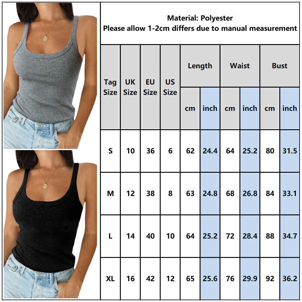 SAFE & SECURE SHOPPING 100% SATISFACTION GUARANTEED FAST SHIPPING Store Categories Store Categories Other ❤️ Home ✅Clearance Stock Big Promotion ❤️ NEW You may also like Women Sleeveless Vest Tank Tops Ladies Slim Fit Cami Summer Solid Blouse T Shirt Product Description Hello! Welcome to our store! 。◕‿◕。 Please Click the ' ❤ 'and save our store! Please Click ' worldicon ' and ' visit store ' to browse all our products! Purchase Note: ⭐Brand New, high quality! ⭐5-7 days Shipping! Fast delivery! ⭐Can be wholesale! ⭐Ready to ship! ⭐If the product does not meet your expectations, send us the picture. We will give you a refund after Verification. Product Features : Main Material:Polyester,Spandex Popular Element:Solid,Basic Tops Occasion:Daily Style:Casual Length:Regular Neckline:Round Neck Strap Type:Racerback Sleeve Length:Sleeveless Pattern:Solid Season:Four seasons Size:S,M,L,XL,2XL Garment Care:Hand Wash,Machine Washable Care Instructions: Wash before wear Cold gentle machine wash Do not bleach Drip dry / Spin Dry Do not wash with light colors Package Content: 1 x Piece of Top About This Item(We aim to show you accurate product information) 1.Please see the size reference to find the correct size. 2.There may be slightly color difference cause of light shooting. 3.Please allow 1-3cm difference due to manual measurement(note 1cm=0.39inch) Thanks for your understanding. Size chart: Size-Details Tag Size UK Size EU Size US Size Length Waist Bust cm inch cm inch cm inch S 6 34 4 62 24.41 64 25.20 80 31.50 M 8 36 6 63 24.80 68 26.77 84 33.07 L 10 38 8 64 25.20 72 28.35 88 34.65 XL 12 40 10 65 25.59 76 29.92 92 36.22 2XL 14 42 12 66 25.98 80 31.50 96 37.80 Note: ➜Due to the difference between different monitors, the picture may not reflect the actual color of the item. We guarantee the style is the same as shown in the pictures, but not the same performance on different bodies as on the model. ➜Compare the detail sizes with yours,please allow 1-3cm differs due to manual measurement, thanks (All measurement in cm and please note 1cm=0.39inch) ➜NO CANCELLATION of orders once we sent out. ➜Once the parcel has been shipped out, we are not liable to any delay, loss or damage incurred during transit of parcels. Please make sure to input your complete name and exact shipping address to avoid delays in delivery. ➜Delivery time does not include holidays! ➜If you have any questions, please call me at the first time!!!We will answer the questions as soon as possible. If you are satisfied with the product and service,please give me 5 stars" ⭐⭐⭐⭐⭐ "and leave a review to rate the shop. Every score is very important to the shop. Thank you very much! Payment Shipping Returns Contact Us Payment When you are ready to pay, Simply click the "Pay Now" button at the top of the eBay item page to submit a secure payment through check out. Shipping Shipping costs are calculated by EBAY based on the weight of the item. All items will be shipped, unless requested otherwise. Your total shipping charges will be automatically calculated during checkout prior to the completion of your order. If you are purchasing two or more items, please contact us to save on combine shipping rates. Returns Shipping costs are calculated by EBAY based on the weight of the item. All items will be shipped, unless requested otherwise. Your total shipping charges will be automatically calculated during checkout prior to the completion of your order. If you are purchasing two or more items, please contact us to save on combine shipping rates. Contact Us We are happy to assist you with any questions or concerns you might have before placing the order or after you receive your order. Please kindly contact us via eBay messages and a member of the customer services team will get back to you as soon as possible. Please Note: Our Office Opening Times are: Monday-Friday from 09:00 - 17.30 BST. On the days the office is closed, we will not be able to answer your queries or dispatch your orders out, Also all orders placed on the weekends will be dispatched within the next 2 working days. Copyright © 2022 Tongtool