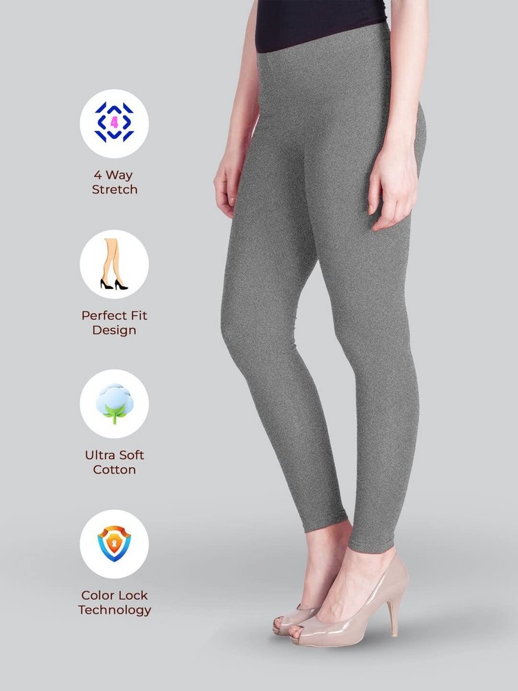 Women Solid Premium Cotton Ankle Length Legging Size L Casual Wear Grey Melange