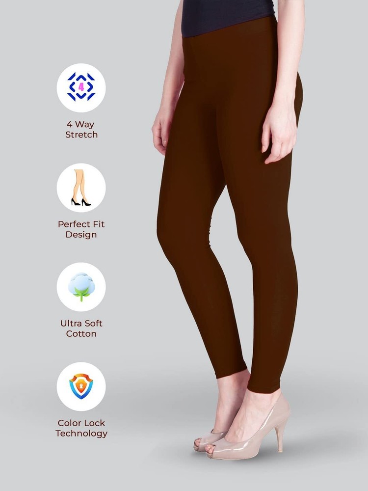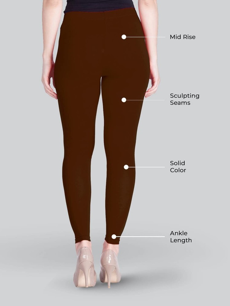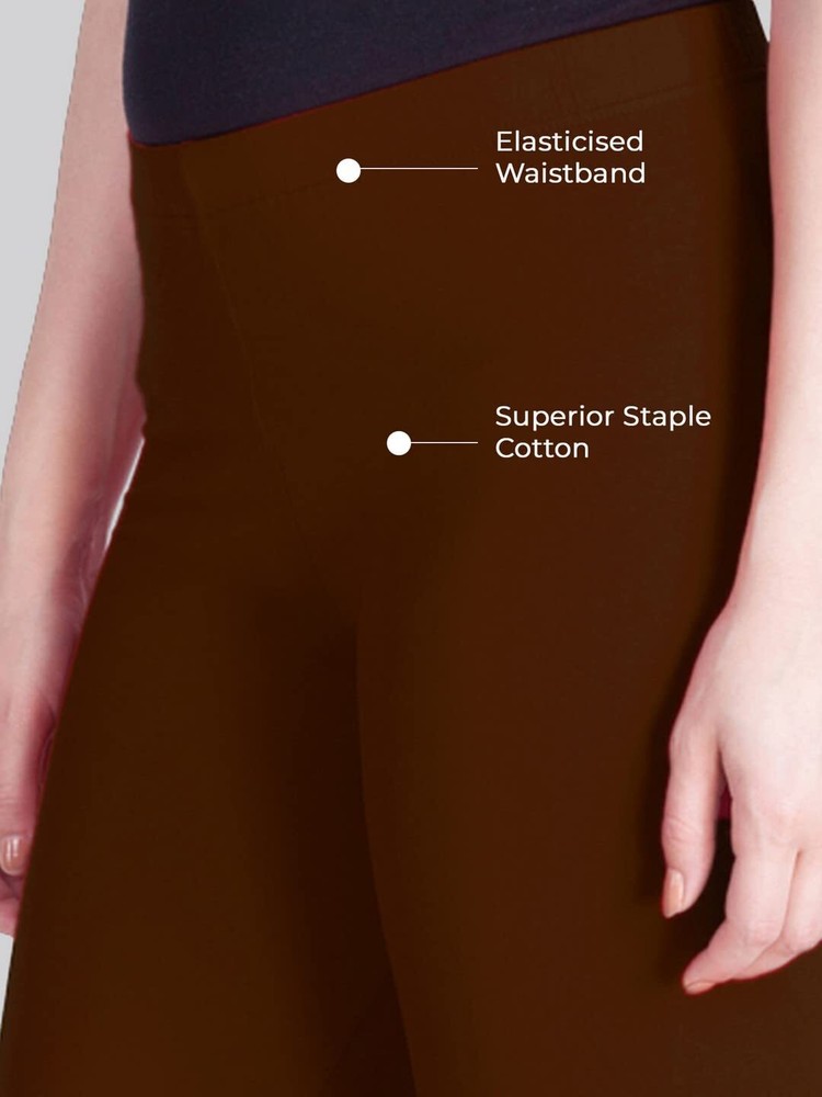 Women Solid Premium Cotton Ankle Length Legging Size L Casual Wear Hot Chocolate