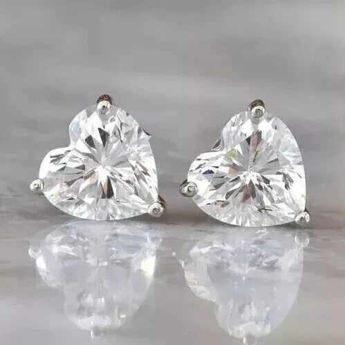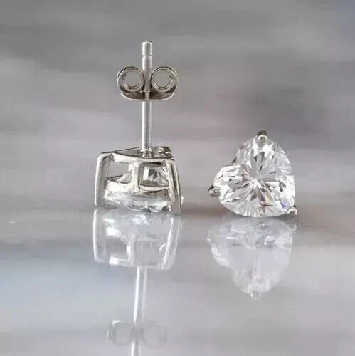 Women Solitaire Stud Earring 14k White Gold Over 1Ct Heart Cut Simulated Diamond