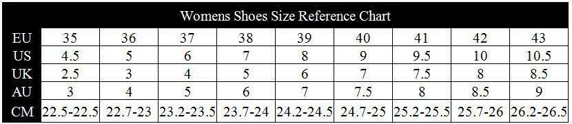 If you foot are not Narrow,suggestion one size larger ,but choice is yours China Size UK Size US Size EUR Size AU Size Length (cm) 35 2.5 4.5 35 3 22.0-22.5 36 3 5 36 4 22.6-23.0 37 4 6 37 5 23.1-23.5 38 5 7 38 6 23.6-24.0 39 6 8 39 7 24.1-24.5 40 7 9 40 8 24.6-25.0 41 7.5 9.5 41 8.5 25.1-25.5 42 8 10 42 9 25.6-26.0 43 8.5 10.5 43 9.5 26.1-26.5 Notice:No negative or neutral feedback, If you were not satisfied with the item ,please contact me by ebay message first,we will give you a satisfied solution,thank you very much Country Delivery Time Note United States 8-20 work days not received 30 days Contact me refund Canada,UK 10-25 work days not received 37 days Contact me refund Europ 15-25 work days not received 40 days Contact me refund Some of Europ:Bulgaria,Albanien Rum?nien,Czech Republic 15-30 work days not received 45 days Contact me refund Argentina,Israel,Russia,Brazil,Peru,Chile Armenia,Ukraine,South Africa,Bosnia and Herzegovina and others 20-37 work days not received 55 days Contact me refund 1. We accept PAYPAL only. 2. Payment must be made within 7 days of auction closing (Unpaid dispute will automatically open when item is not paid in 7 days). 3. PLEASE NOTE: SHIPPING&HANDING DOES NOT INCLUDE DUTIES, LOCATL TAXES OR ANY OTHER IMPORTATION FEES. 4. Please list your special requests (color, packages, value of declaration, etc.) in the EBAY NOTES SECTION when you make payment 1. We Ship to Worldwide 2. We ship your orders within 1-20 business days after the payment cleared. 3. Item shipped from China via china Post Airmail, reach most of the countries within 2 to 4 weeks. 4. Delivery time depends on destination and other factors, it may takes up to 20 days. If you don't receive the item after 25 days,please contact us, we'll investigate and solve the delivery problem. 5. Import duties, taxes, and charges are not included in the item price or shipping cost. These charges are the buyer's responsibility. Please check with your country's customs office to determine what these additional costs will be prior to bidding or buying. 1. Customer satisfaction is our top goal. All products are quality checked. They are new and in good condition when shipped to our customers. If product is defective or damage upon arrival, or wrong product shipped, please contact us immediately. Returns accepted within 30 days of delivery date and item must be in original new condition, not worn or altered in any way with attached tags & wrap. Otherwise deal is final. Return shipping must be paid by buyer. 2. Please contact us first if you have anyproblems/questions/concerns. We will be happy to resolve any issues you may have in a cordial and friendly manner. 3. We appreciate your Positive Feedback, and will do the same in return. PLEASE DO NOT leave negative feedback without first communication with us. Please allow max 24 HOURS for us to respond We maintain high standards of excellence and strive for 100% customer satisfaction! Feedback is very important to us. We request that you contact us immediately BEFORE you give us neutral or negative feedback, so that we can satisfactorily address your concerns.It is impossible to address issues if we do not know about them! We care about our valued customers, if you have any questions, please feel free to contact us in EBAY MESSAGE, our Customer Service staffs will be very pleasure to reply you in 24 Hours. eBay Cross Border Trade powered by ChannelEffect