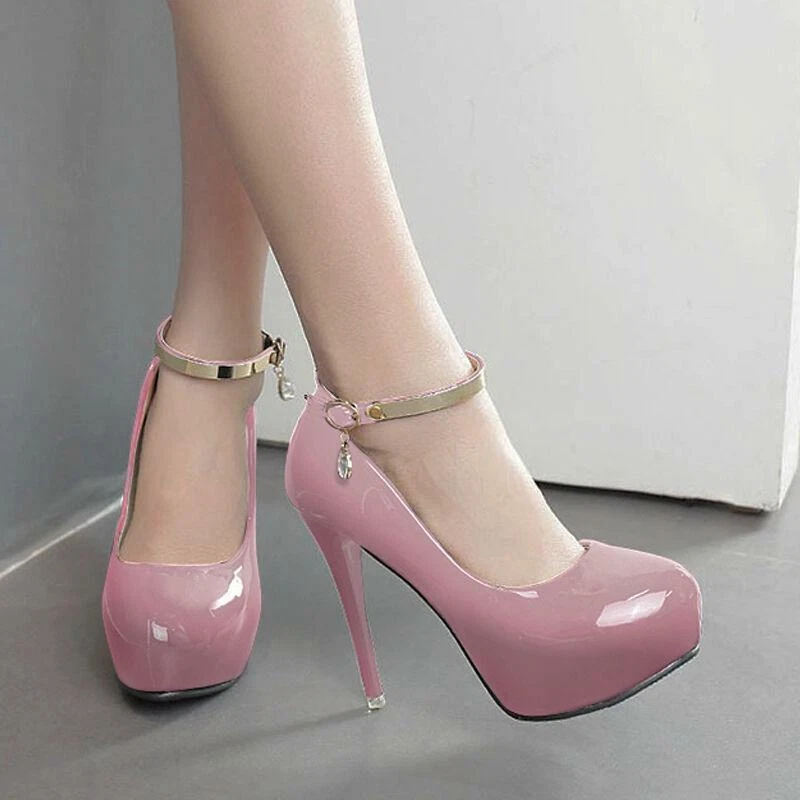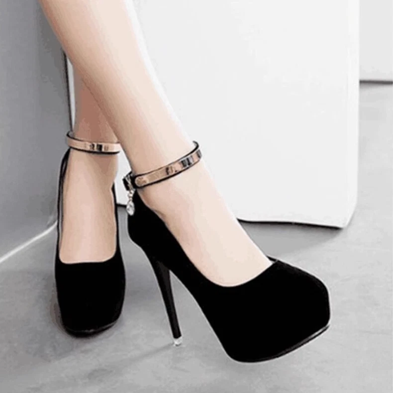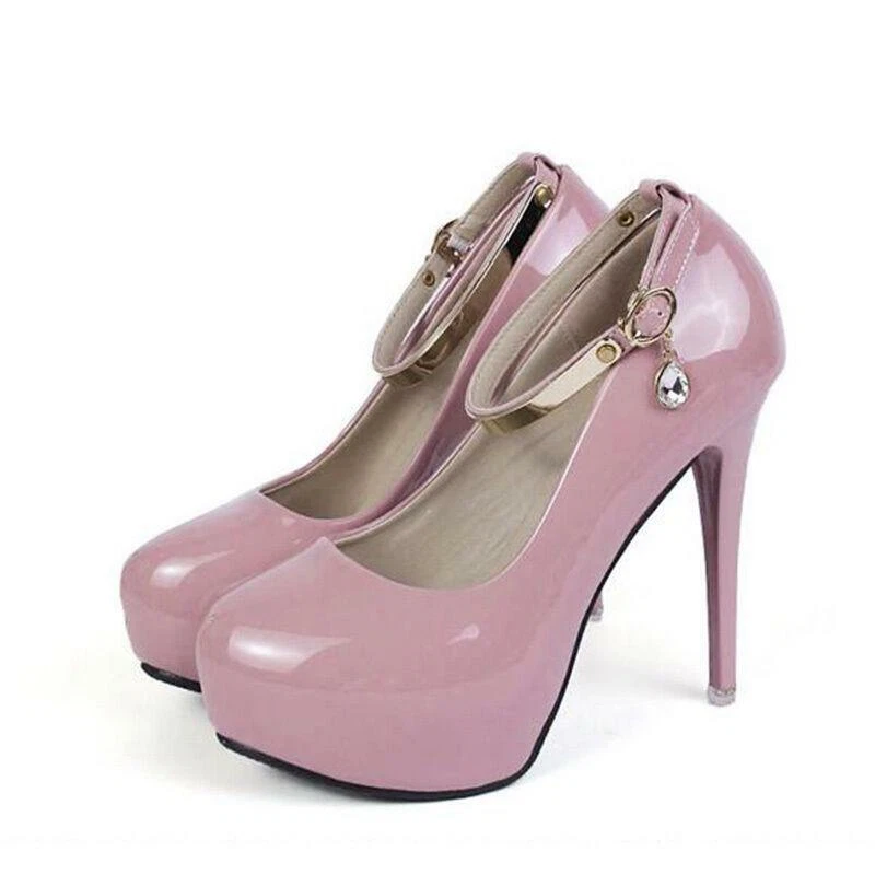 Women Stiletto Heel Platform Pumps with Ankle Strap Round Toe Clubwear