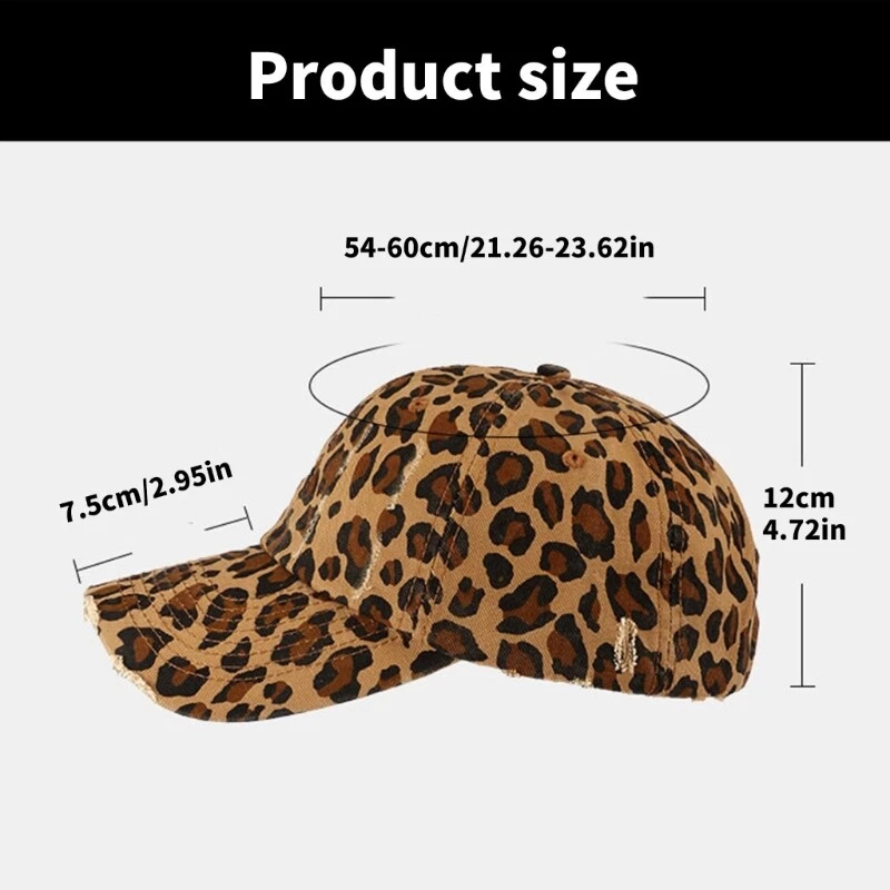 Women Trendy Baseball Caps Leopard Pattern Hat Vintage Sunproof Snapbacks Hat Features: Embracing the retro with our distressed leopard print baseball hat, blend of vintage styles and modern lookings, designed to make you stand out on the street. Use selected cotton, this Caps features adjustable for various head size, ensuring comfortable and durability while maintaining its trendy aesthetic. Great for fashion forward individuals, both men and women, who like to show their unique styles and follow with the latest trends. for a variety of occasion, whether enjoy a casual wear, the streets in styles, engaging in outdoor sports, or embarking on a travel adventure. This multiuse accessory not only add a touch of personality to your outfits but also serves as a practical headwear for sun protections during your daily activity. Specifications: Product Dimension: approx. Head circumference 56-58cm/22.05-23.62inch Component: Cotton Color Option: 2 optional color as pictures shown Package Includes: 1PC Baseball Hat note: Please allow 1-2cm errors due to manual measurement. Due to the differences between different monitors, the picture may not reflect the actual color of the item.