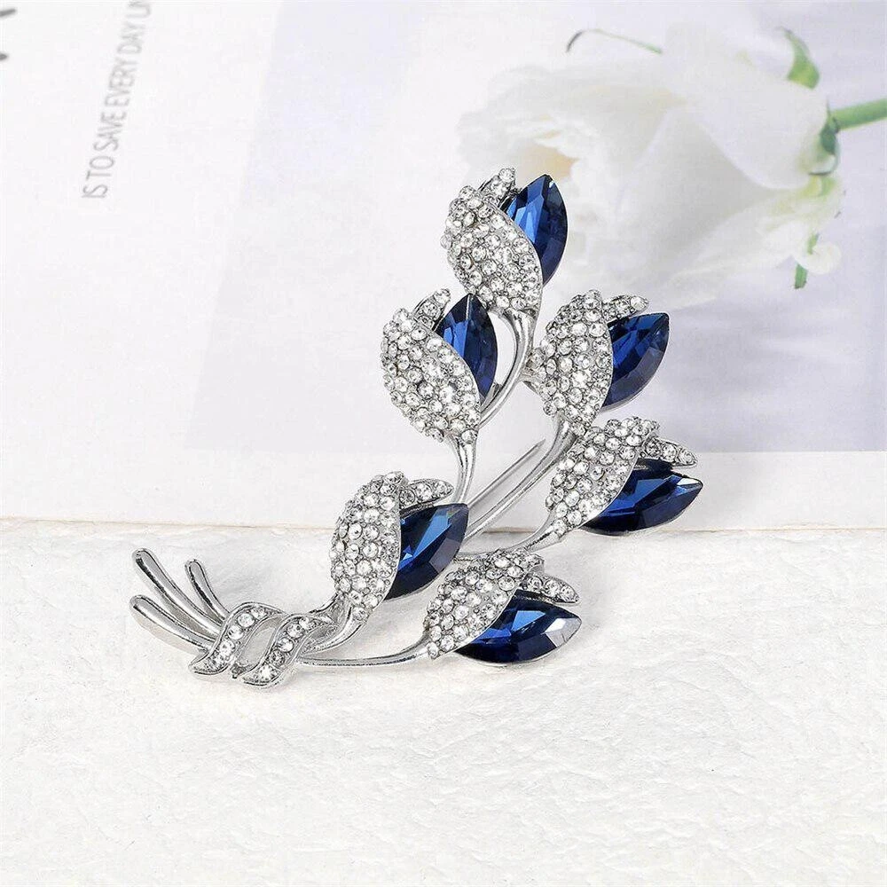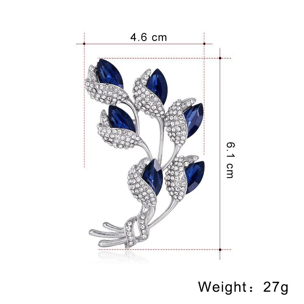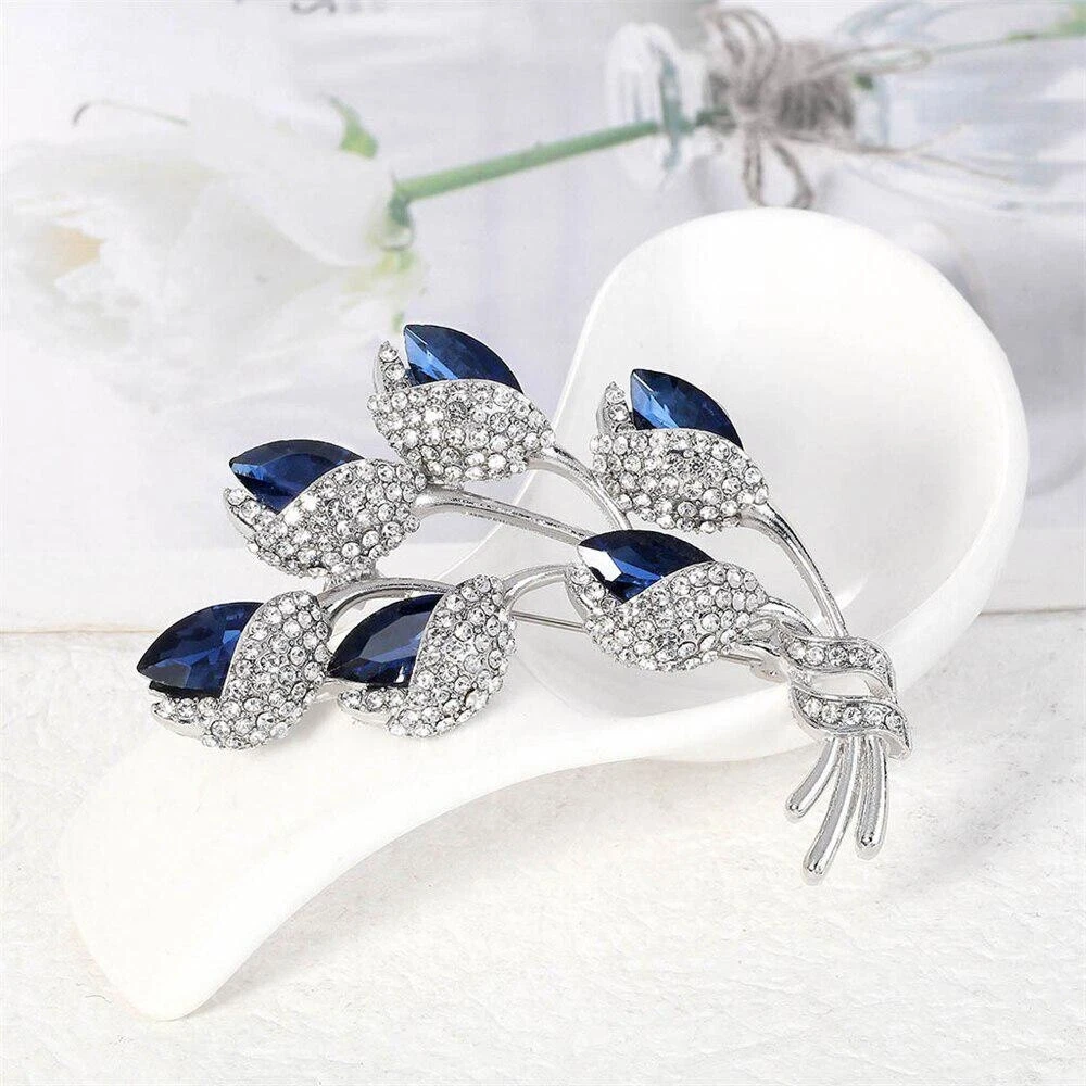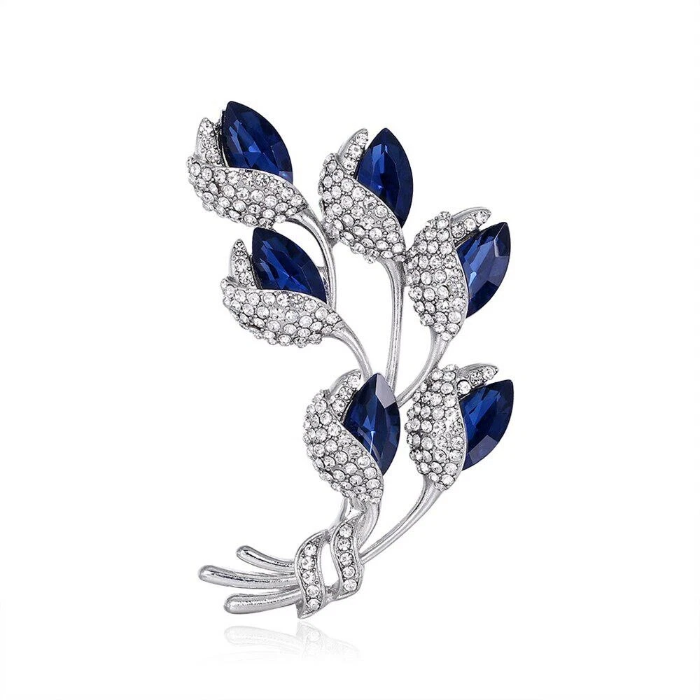 Women Vintage Blue Crystal Brooch Fashion Plant Flower Brooches Rhinestone Pins