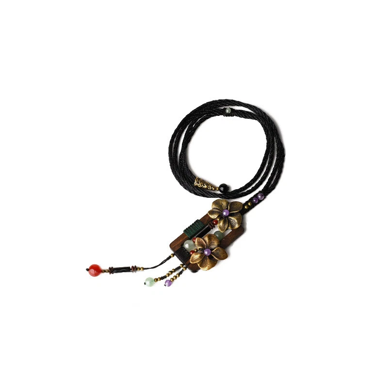 Women Vintage Wood Chip Necklace Pendant Sweater Chain Handmade Retro Necklace