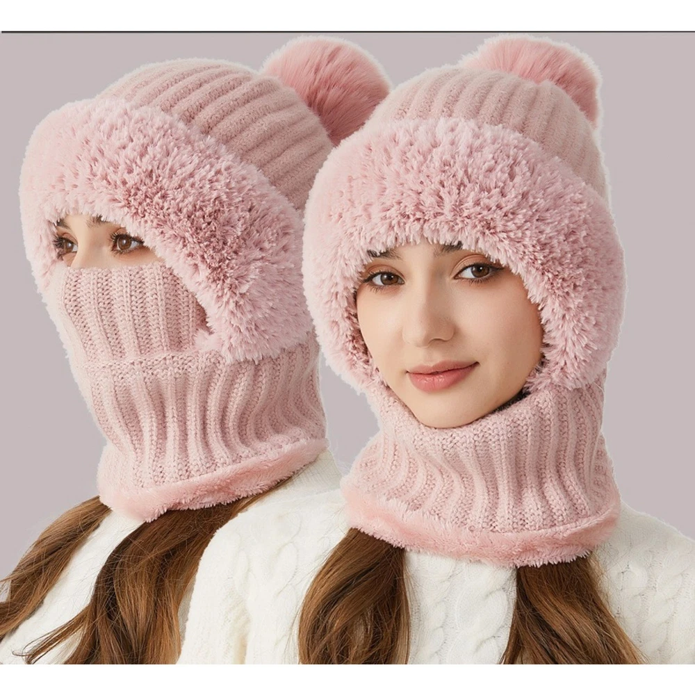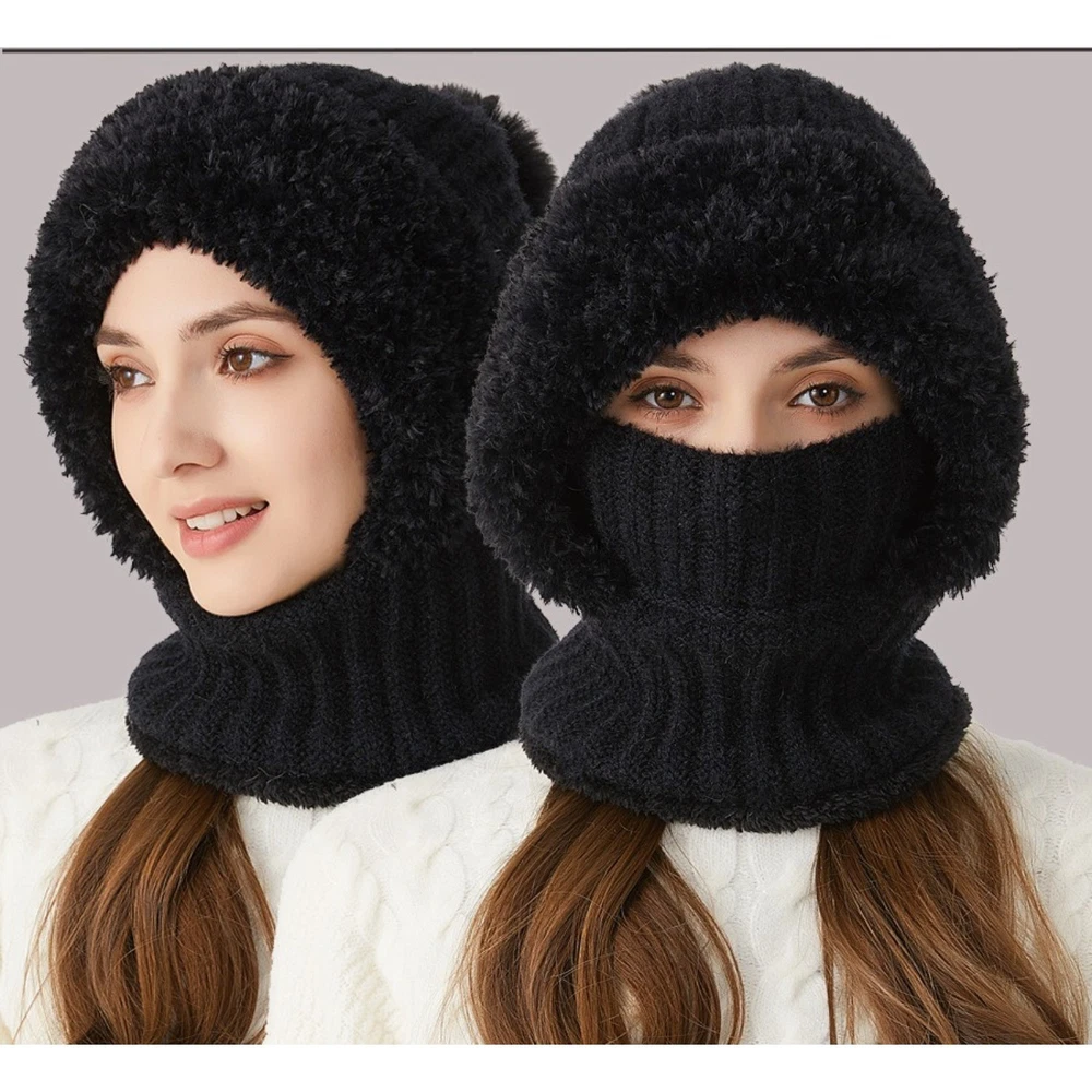 All-in-One Winter Warmth : This integrated set combines a beanie, balaclava, and neck cover into one piece, with fleece lining to trap heat, fully shielding your head, face, and neck from cold air and wind. Durable Knit & Fleece Construction : Crafted with sturdy knit fabric on the outside and soft fleece lining on the inside, it resists wear and tear while providing excellent windproof and cold-resistant performance. Convenient One-Piece Design : No need to assemble separate accessories—just put it on and go. It’s ideal for various winter scenarios, including outdoor walks, biking, commuting, and daily use. Comfortable & Breathable Wear : The fleece lining offers skin-friendly softness, and the knit material ensures proper breathability, so you stay cozy without feeling stuffy even after long hours of wear. Secure Fit & Fashionable Style : It fits most women’s head sizes snugly without slipping, and its chic knit design adds a trendy touch to your winter wardrobe.