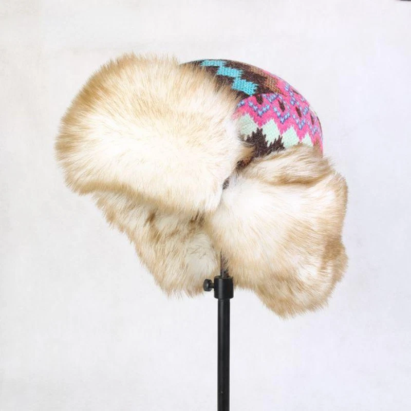 Women Faux Fur Jersey Colbacco Beanie Cossack Scarf Face Warm Ski