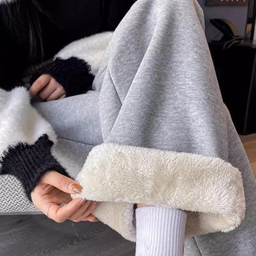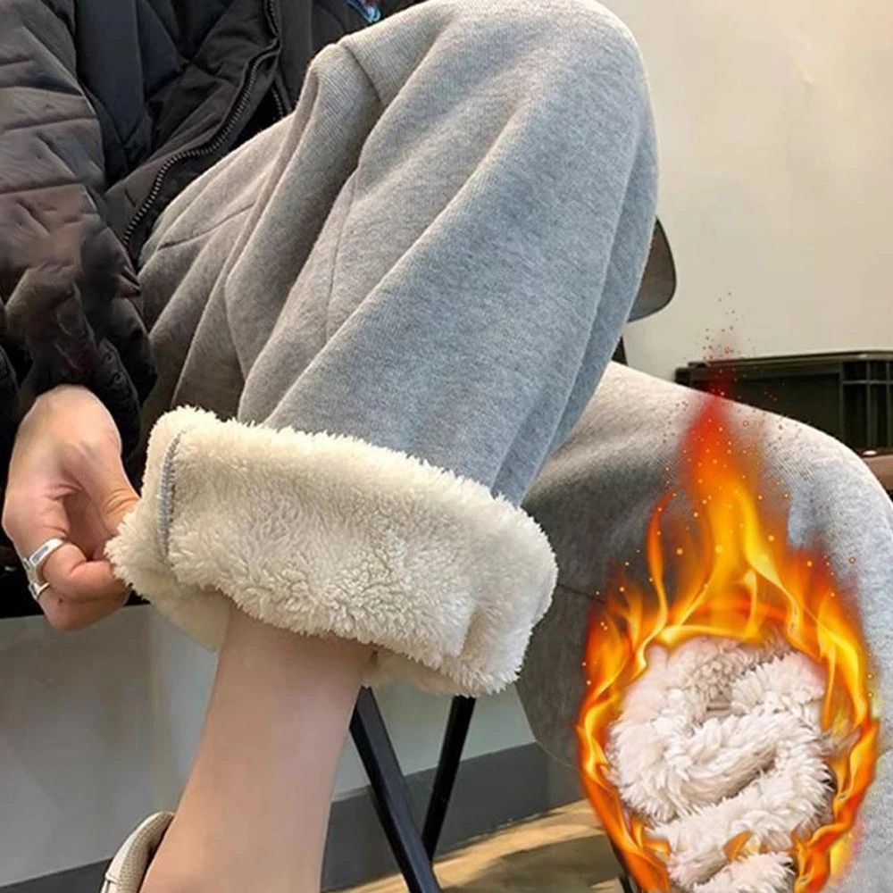 Women Winter Thick Fleece Wide Leg Pants Casual Warm Loose Athletic Pants Xmas