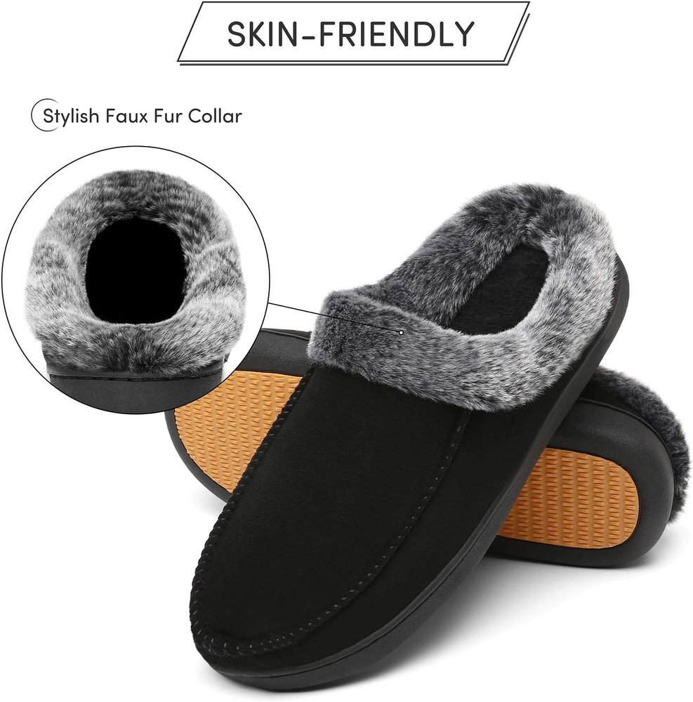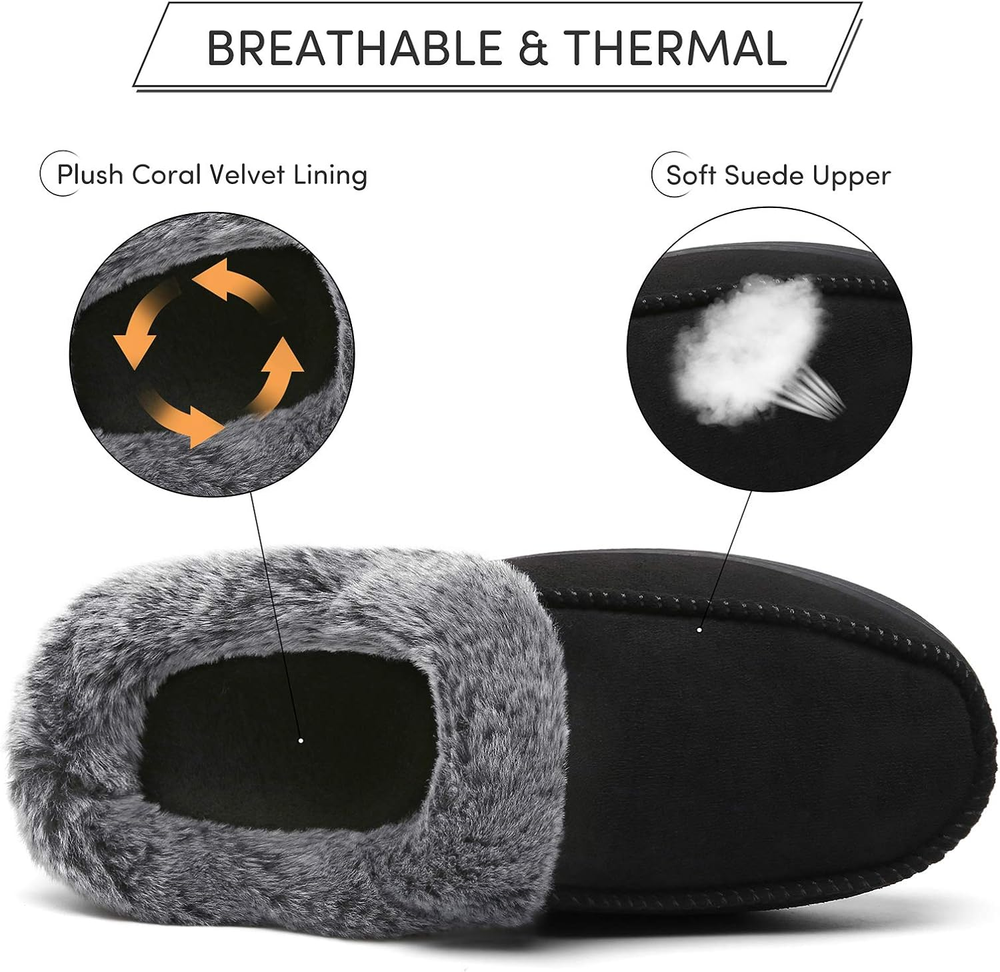 Women'S House Shoes Memory Foam Suede Moccasin Slippers Winter Warm Fleece Lined