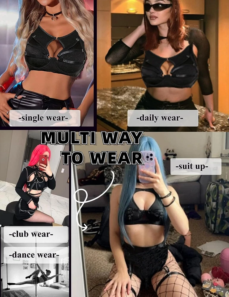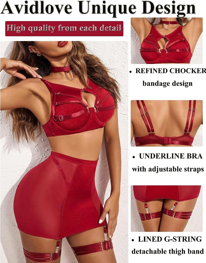 89% Polyester, 11% Spandex Imported Snap closure Hand Wash Only đăElasticity Mesh Fabrică sexy chemise is made of sof t sheer mesh fabric which patchworks premium smooth ployester knit , pro-skin and comfortable, dirt resistant, breathable, and the fabric is stretchy enough to shape your curves. đăUnique DesignăThe top consists of sheer mesh cutout tank and bra with wire, hook & eye back closure and adjustable straps make it easy for wearing. High waisted high stretchy skirt and lined g-string makes you more comfy and charming. Especially all straps are adjustable, detachable thigh band give you more option. đăCharming StyleăThis lingerie bodysuit is perfect as nightwear, daily wear, lounge dress, party club wear, sexy outfit, bra sets for women, also can be an underwear sets under coat or jacket. đăMultiple OccasionsăPerfect to wear it at home/bedroom, lingerie party, wedding night, honeymoon, anniversary, Valentine's Day, boudoir shoot, street phytography, bachelorette party, , cosplay or a special night. Put on ladies lingerie to heat up your partner! đăPackage Contentsă 6PCS womens lingerie set includes: 1xbra, 1xskirt,1xO-ring chocker, 1xG-string, 2x detachable thigh bands. Find your perfect size and having a good night with your lover/your husband with lingerie sets!