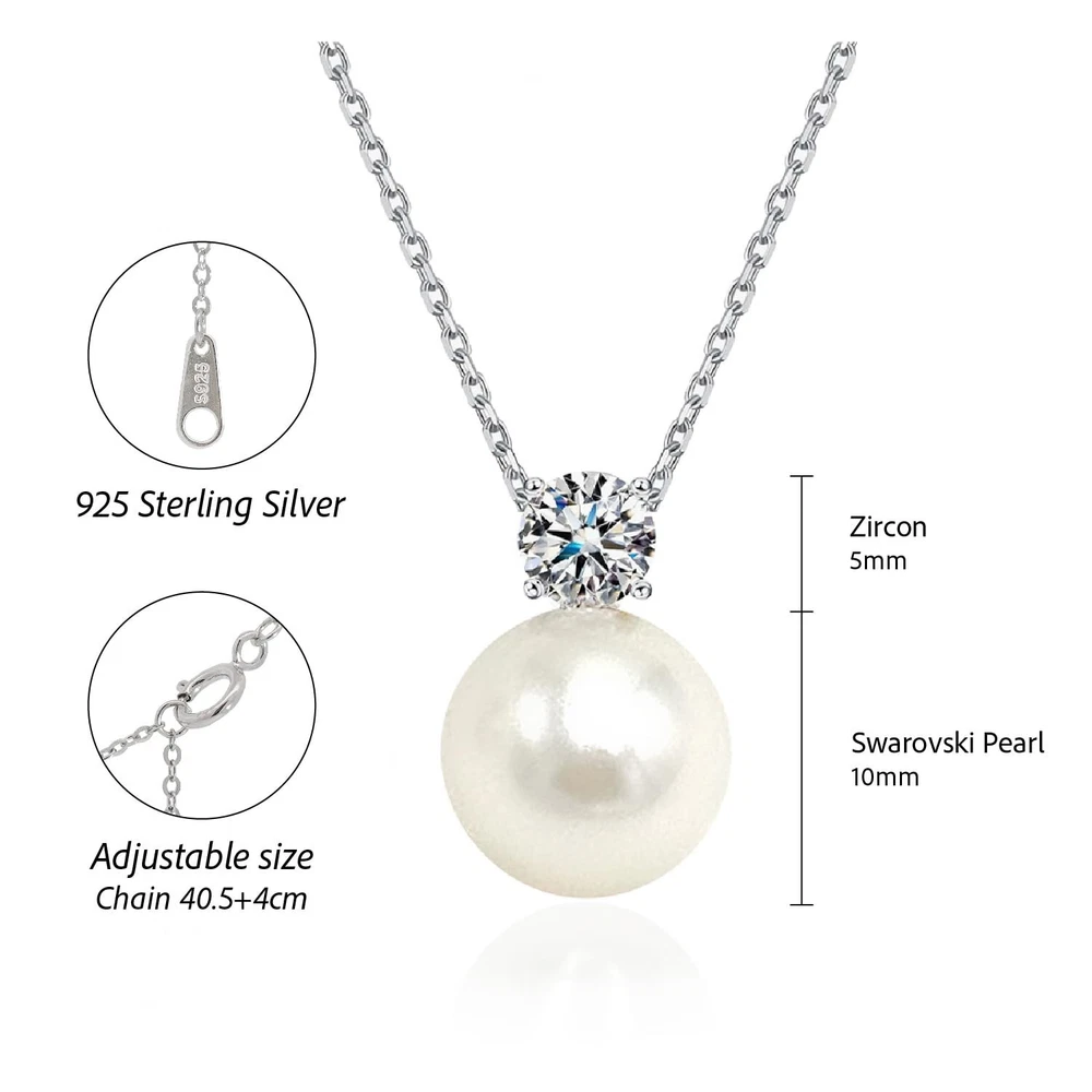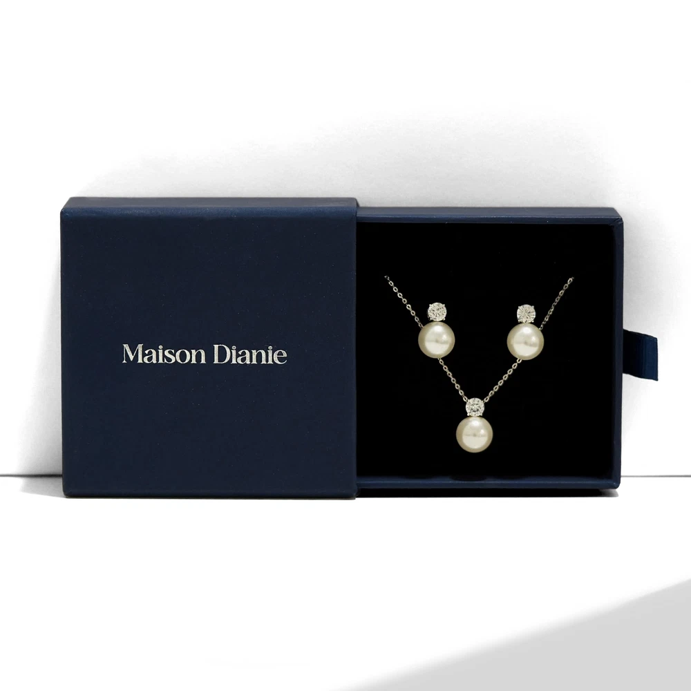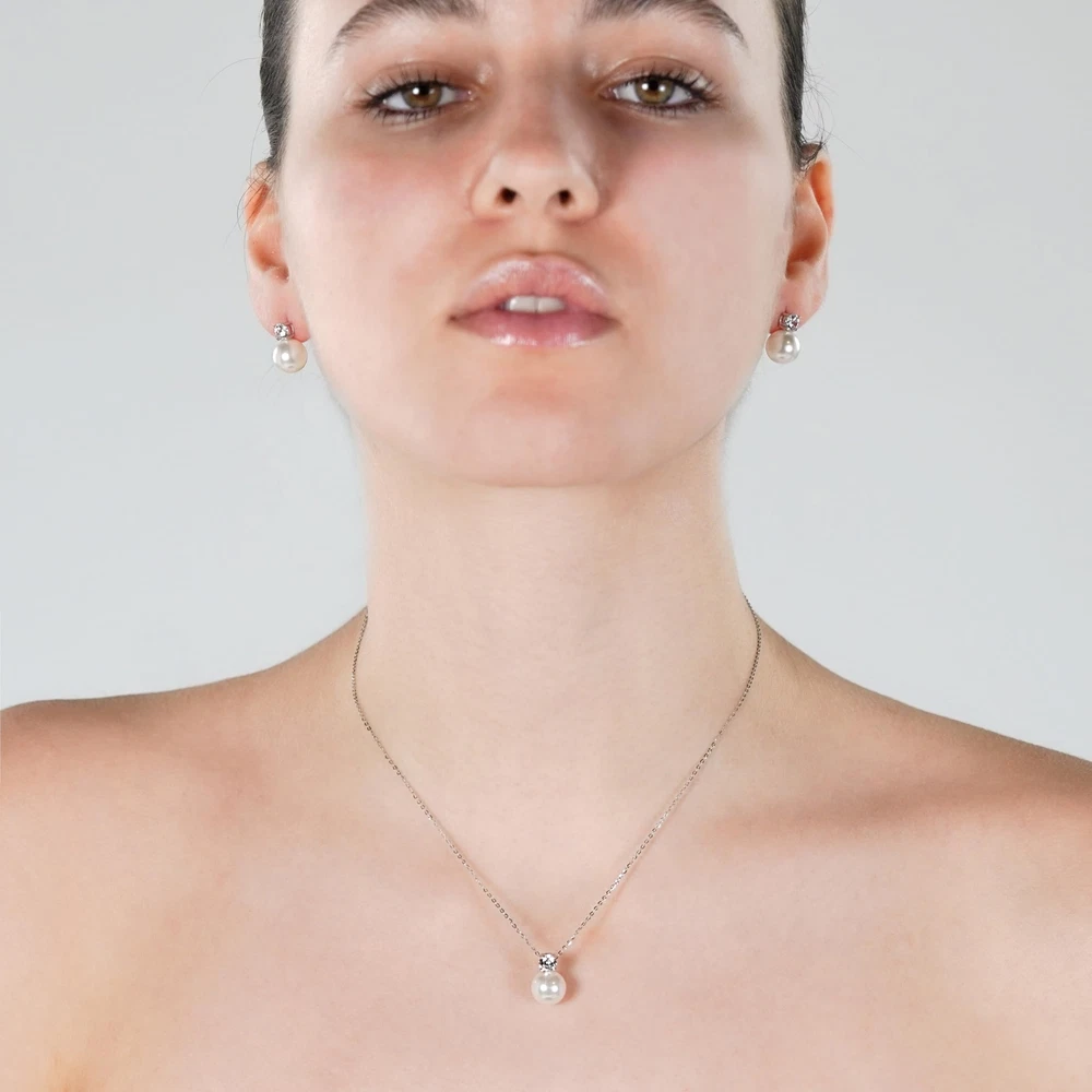 Women's jewelry set Pearl Pendant Necklace and Pearl Earrings Silver 925 White Crystal Pearls 10mm and Zicron Cubic 5mm Product Details Style: White Pearl Necklace Brand: Maison Dianie MPN: Pearl01 EAN: 3760404930040 UPC: Does not apply Department : womens Date First Available : October 21, 2024 Brand, Seller, or Collection Name: Maison Dianie Material: Sterling Silver Gem Type: crystal pearl Chain: Box Clasp: Buckle Metal: Sterling Silver Metal stamp: 925 Silver Number of stones: 1 Stone Creation Method: Synthetic Stone Treatment Method: Clarity Enhanced
