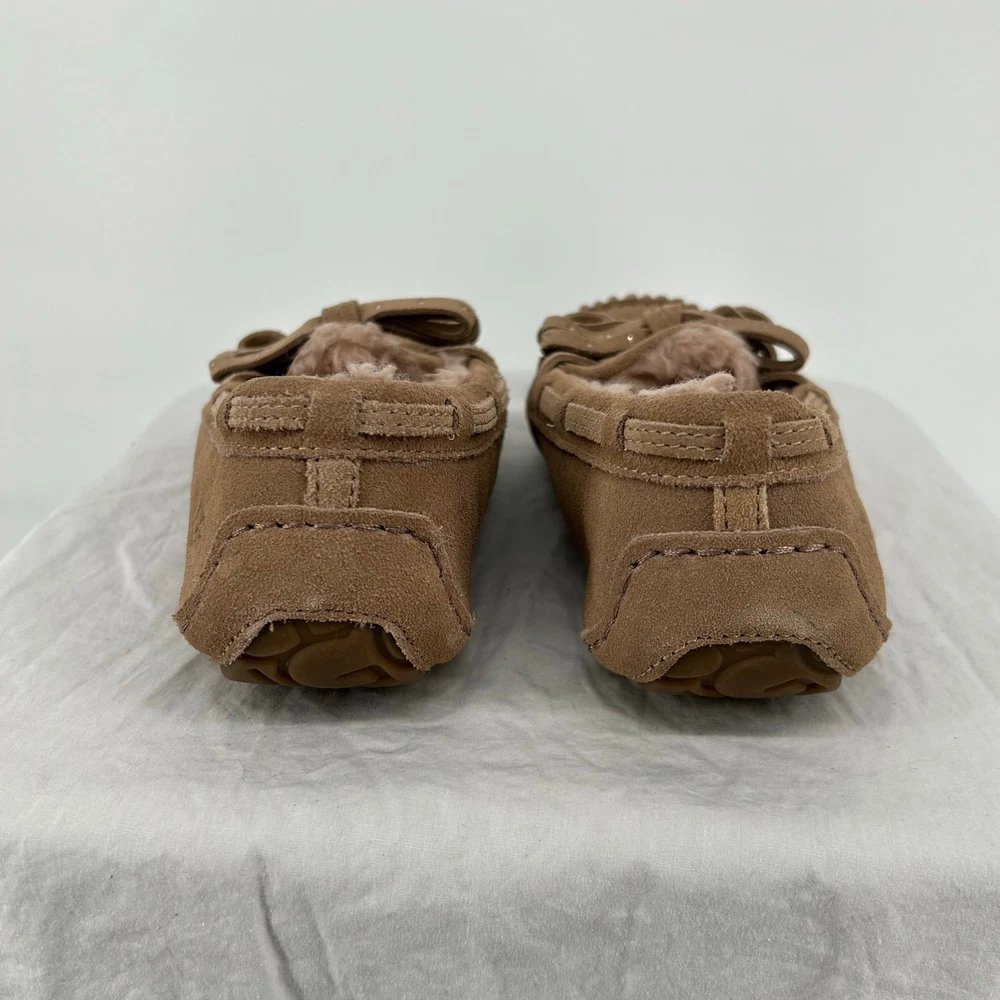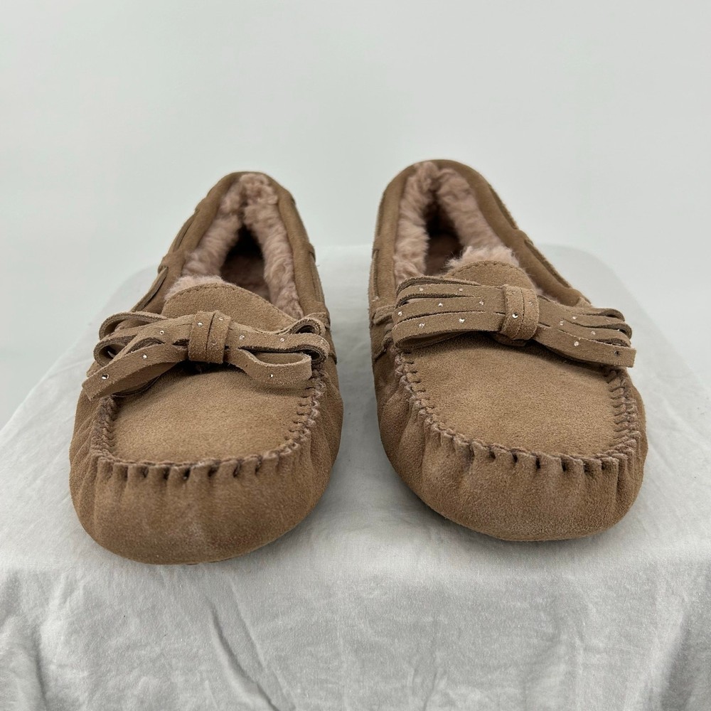 NWOT NWOB Women's Tan Pink 'Beachwood' UGG Dakota Bling Bow Shearling Lined Moccasins Slippers Sz 6M Size: USA Women's 6M These are NWOB/NWOT never worn. Cross listed on several platforms. Feel free to ask any questions!