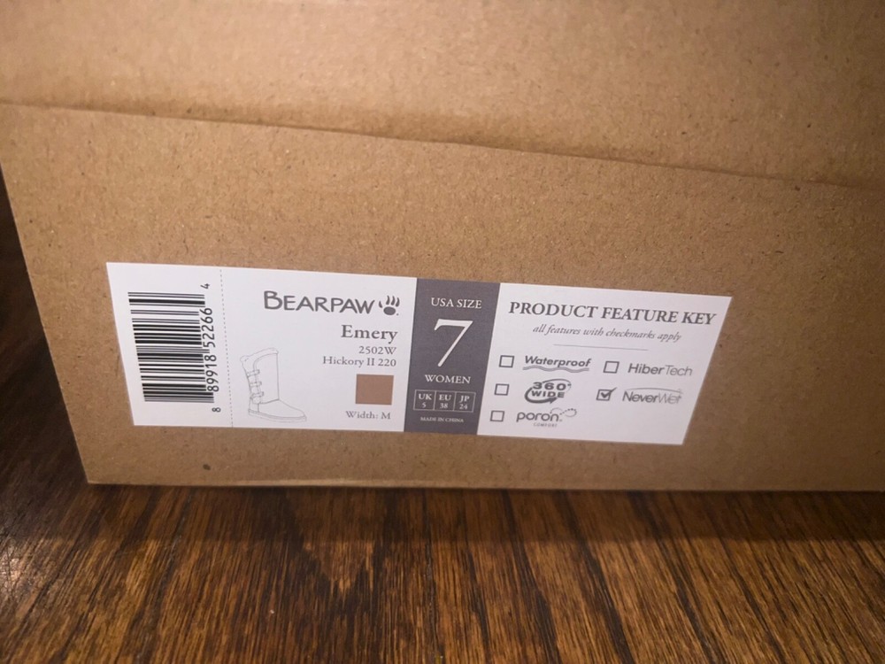 Brand new in original box! Size: Women's Size 7 Medium Width Color: Hickory (Color: II 220) Make a statement with this cozy, free-spirited 11 inch tall boot. Adorned with three decorative strap detail and faux fur collar accent. Treated with BearCoat™ Rain & Stain Repellent for extra protection from the elements. Features: -Suede upper -Faux fur collar -Decorative strap details -Faux fur and wool blend lining -Removable comfort sheepskin footbed -Lightweight blown rubber outsole -Treated with BearCoat™ Rain & Stain Repellent -11" shaft height -12" circumference -0.75'' heel height
