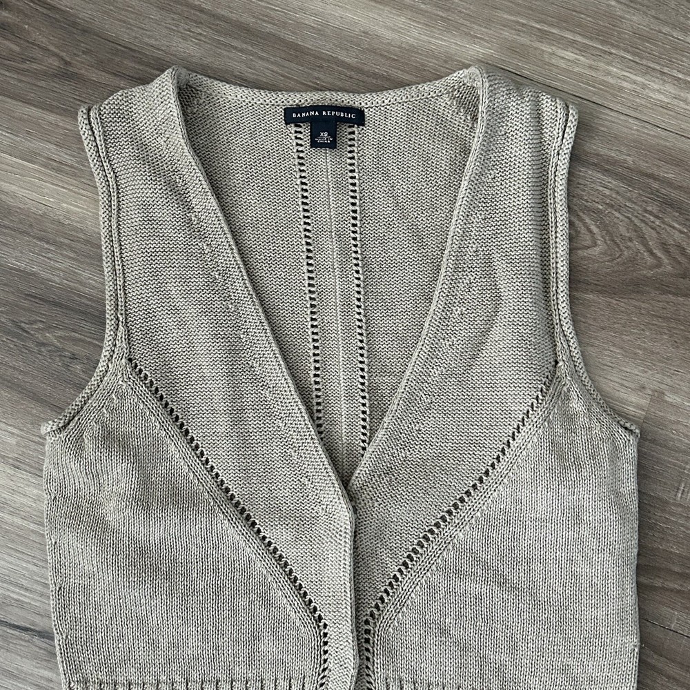 Department: Women Color: Beige Fabric Type: Knit Brand: Banana Republic Size: XS Size Type: Regular Type: Sweater Sleeve Length: Sleeveless Style: Vest