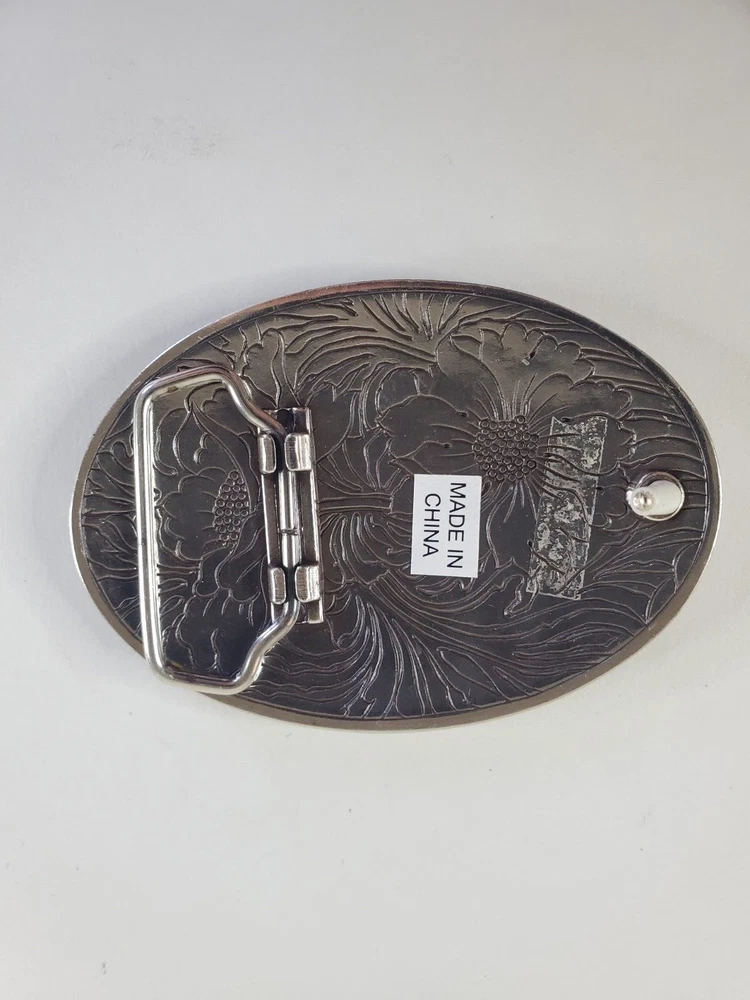 Theme: Cowgirl, Western Brand: Unbranded Pattern: Floral Features: Oval Material: Metal Handmade: No Color: Silver Country/Region of Manufacture: Unknown Fits Belt Width: 1.5 in Accents: Buckle Type: Belt Buckle Department: Women Style: Western Buckle Vintage: No