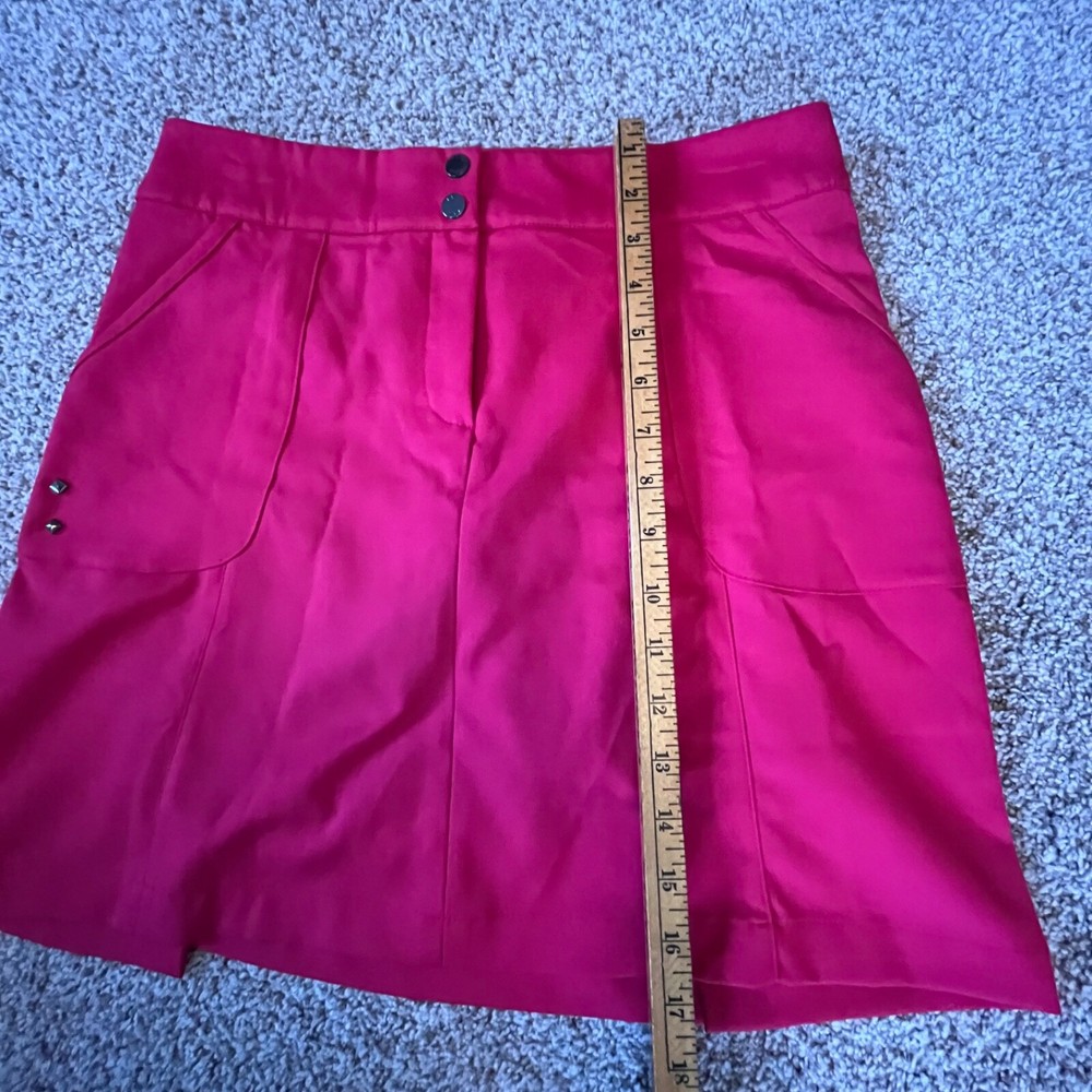 Absolutely love this skort! The vibrant red color is stunning, and the fit is perfect for both golf and casual wear. The front and back pockets are super handy, and the black inner shorts stay in place comfortably. The double button and zipper closure feels secure. Even though it's pre-owned, it looks and feels almost new—awesome find! Highly recommend for anyone who wants style and function.