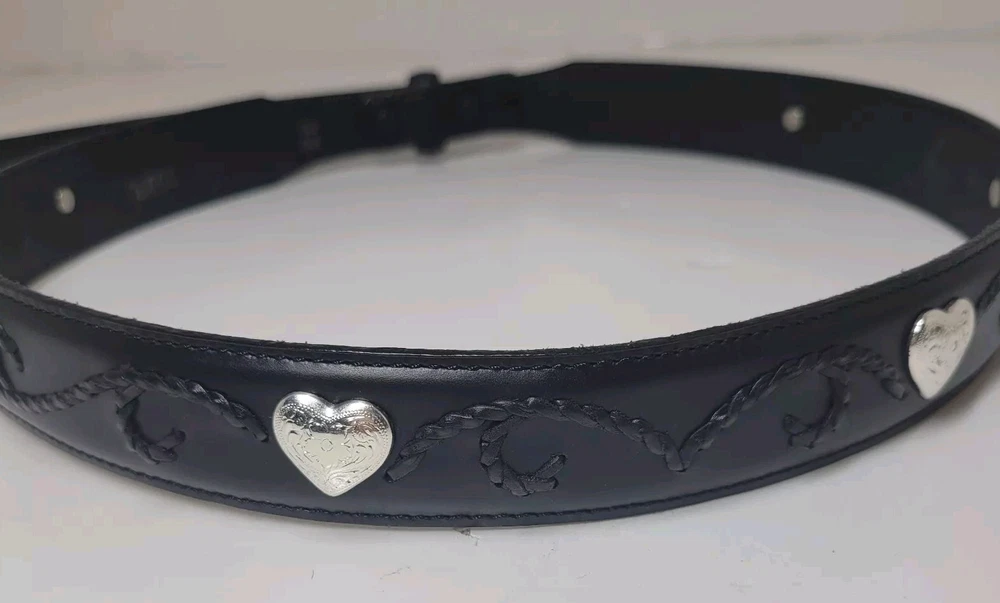 Womens Nocona Black Genuine Leather Belt Silver Studded Size 32