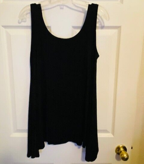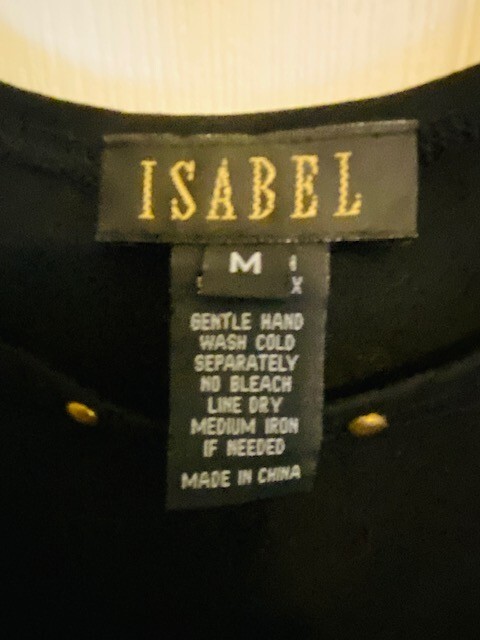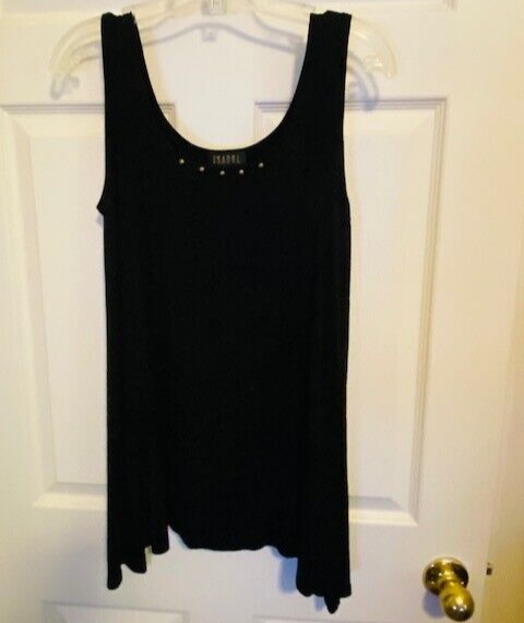 Elevate your wardrobe with this stunning Isabel Black Tunic Tank, featuring elegant gold stud embellishments. The flattering scoop neckline and sleeveless design make it perfect for any occasion. This tunic is crafted from high-quality polyester material, ensuring durability and long-lasting wear. The black color and metal theme of the accents make it a versatile addition to any outfit. This tunic is available in size medium, and is perfect for women who want to make a statement with their fashion choices. Add this stylish piece to your collection today! Very Good Condition