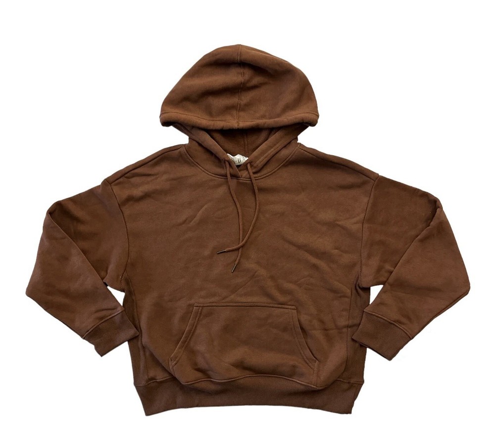 This hoodie is so cozy and comfortable—perfect for lounging or running errands. The fleece is soft, the fit is relaxed but still flattering, and the ribbed cuffs add a nice touch. Love the rich brown color too! Great quality for the price.