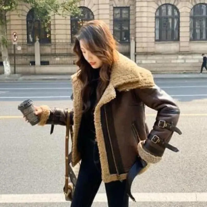 Premium Women's Handmade Brown Sheepskin faux Shearling Coat by Stitchin West Experience the perfect blend of luxury, style, and functionality with our Premium Sheepskin Shearling Coat . Handcrafted with precision and care, this timeless piece is designed to complement your wardrobe while offering unmatched comfort and warmth. At Stitchin West, we prioritize quality and customer satisfaction, ensuring you get nothing but the best. Why Choose Our Shearling Coat? ✓ 100% Genuine Sheepskin Leather : Crafted from premium, authentic leather that ensures durability, softness, and a luxurious feel. We never compromise on quality. ✓ Timeless Design : This shearling coat combines classic aviator styling with modern elegance, making it suitable for any occasion—casual outings, formal events, or winter adventures. ✓ Exceptional Comfort : The plush shearling lining provides warmth and coziness, perfect for chilly weather while maintaining breathability. ✓ Versatile Style : From casual jeans to elegant dresses, this jacket effortlessly elevates your look. ✓ Brand New : Delivered to you in pristine condition, with tags intact, for an impeccable experience. Important Information About Stitchin West Products: ★ Authenticity Guaranteed : At Stitchin West, we use only genuine sheepskin leather. We never use faux or synthetic materials, ensuring you receive a high-quality, durable product every time. ★ Easy Returns & Refunds : We stand by the quality of our products. If you're not completely satisfied, or receive the wrong size or a damaged product, we offer a 100% Money Back Guarantee . Please contact us before initiating a return. (Note: Custom orders are non-refundable.) ★ Perfect Fit Guaranteed : Use our size chart to select the ideal fit. If you need a custom size, simply share your measurements, and we'll tailor it for you. ★ Customer-Centric Service : Every jacket undergoes strict quality checks before shipping. We partner with trusted shipping services to ensure your product reaches you on time and in perfect condition. At Stitchin West , we pride ourselves on delivering products that stand the test of time while offering a seamless shopping experience. Choose our Premium Shearling Coat and step into a world of unparalleled style and quality. Order now and make this luxurious coat yours today!