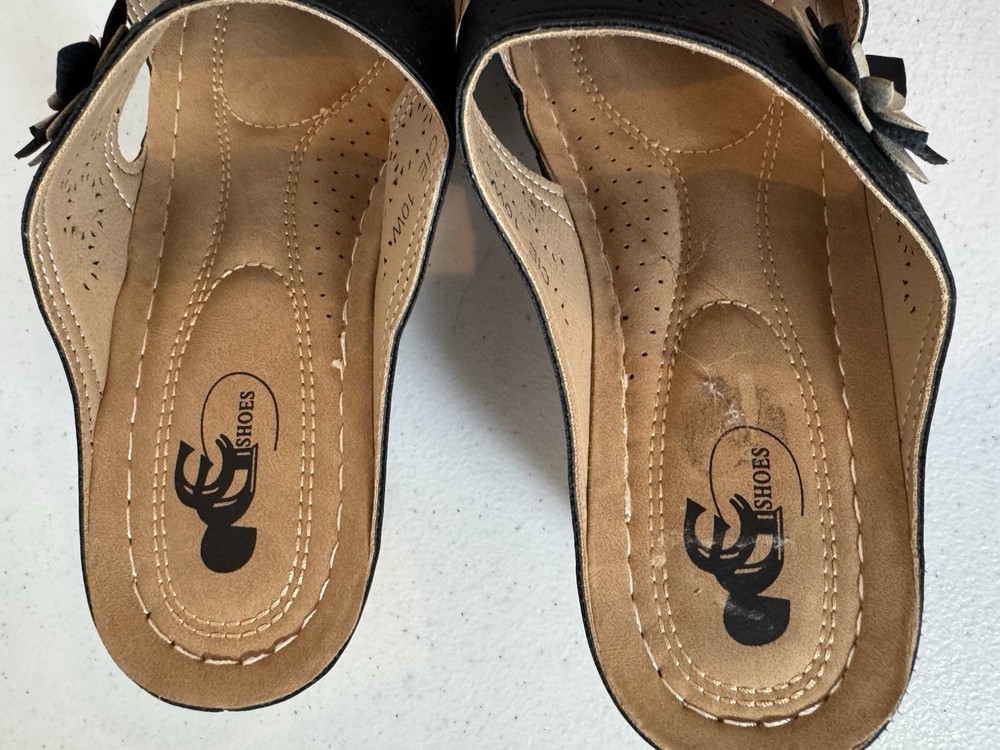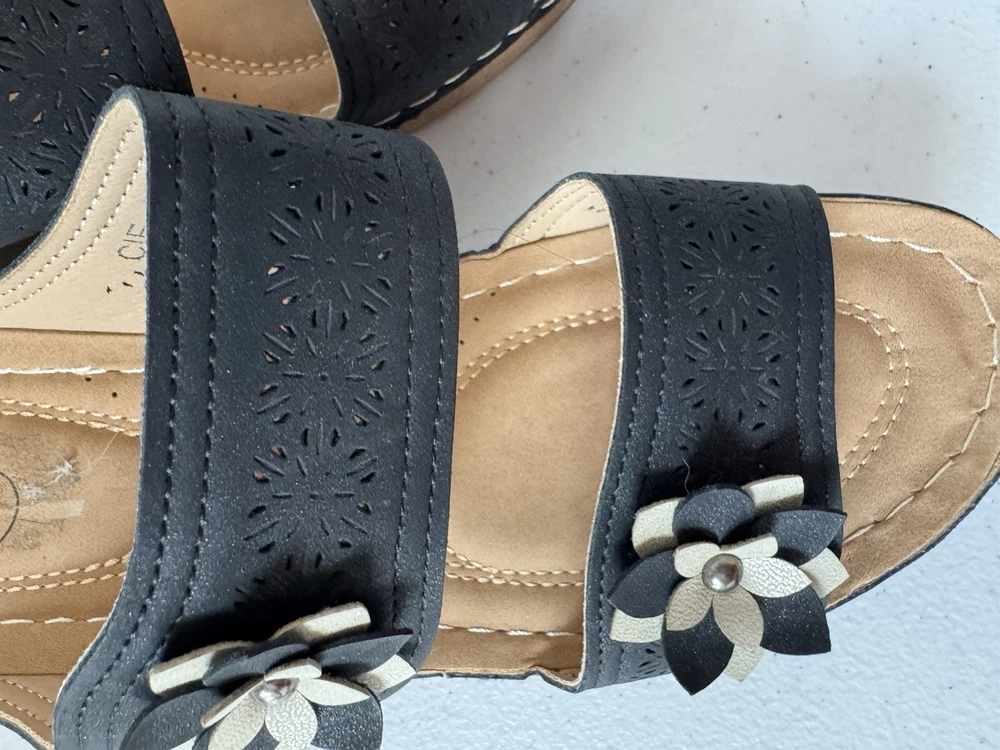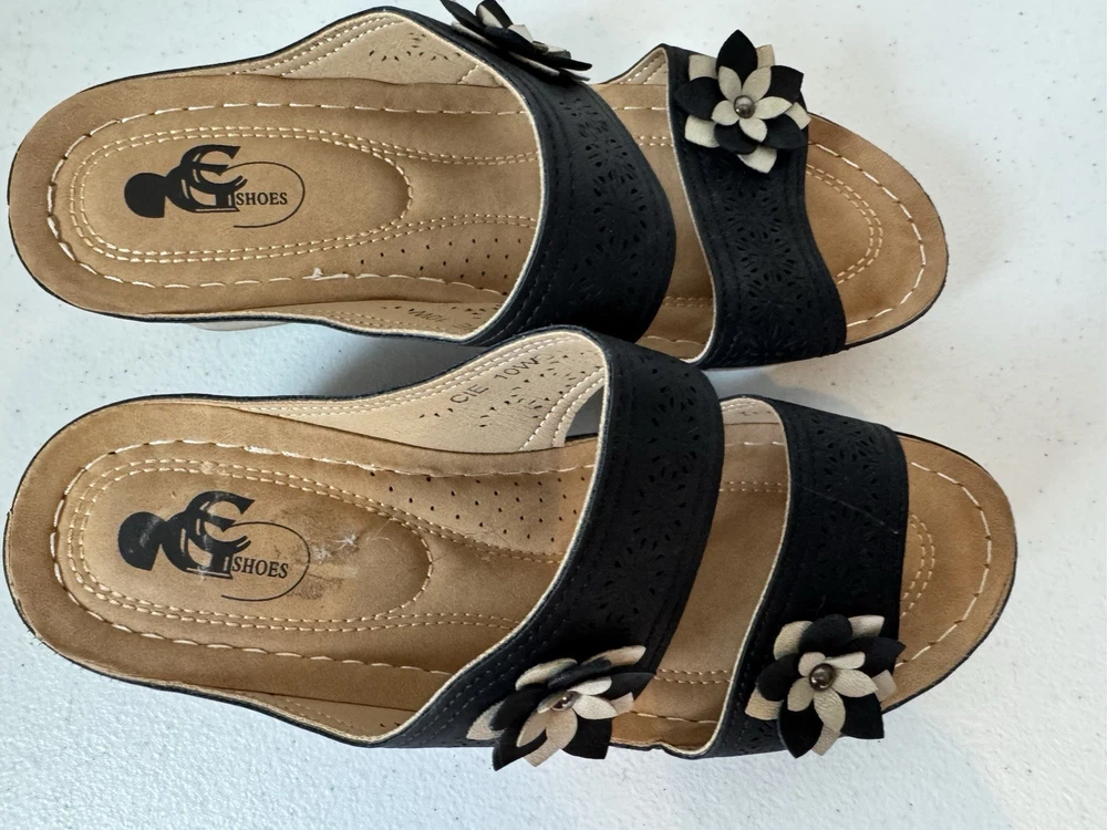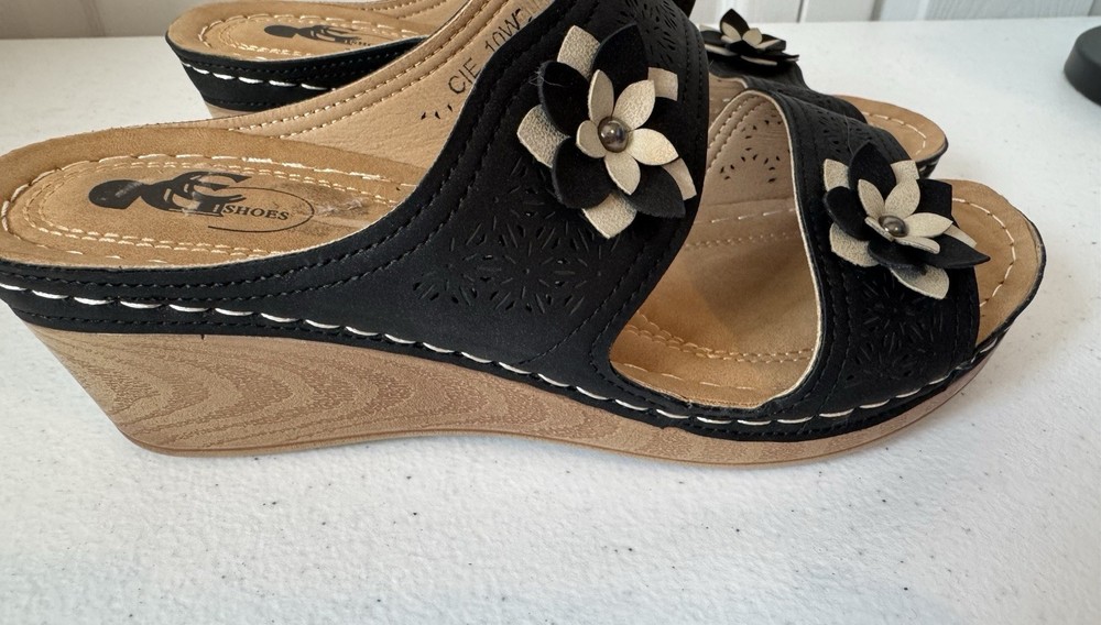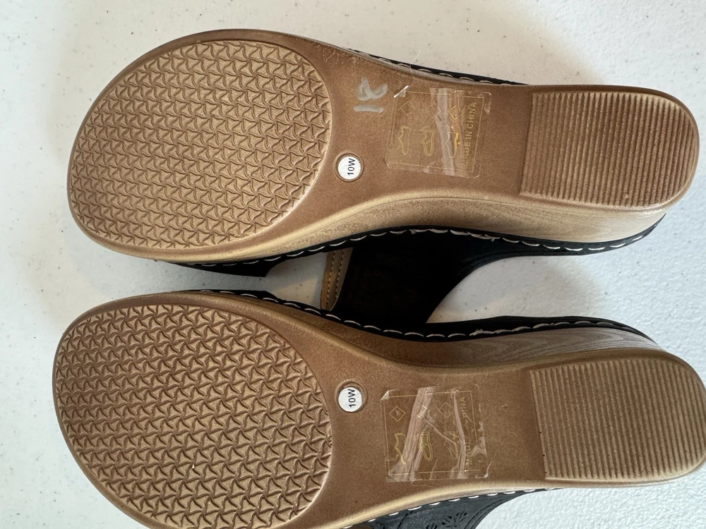 Women’s CG Cie Wedge Size 10W Black/Gold Summer Must Have . Shipped with USPS Ground Advantage.