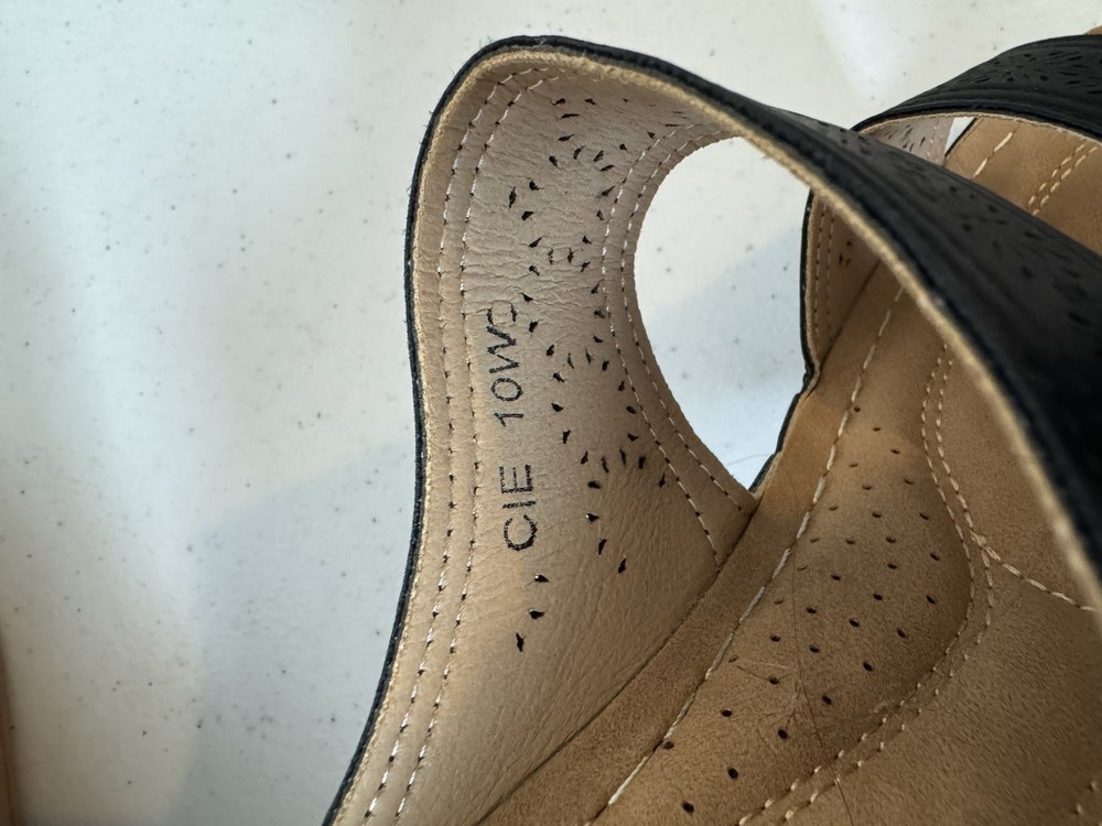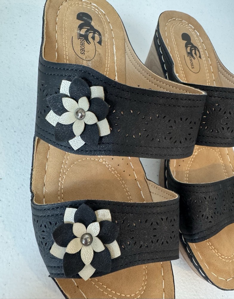 Country of Origin:ChinaUS Shoe Size:10Heel Style:WedgeStyle:Slip-OnColor:BlackType:SandalTheme:MetalSeason:SummerModel:CG CieBrand:CGDepartment:WomenUpper Material:Unknown