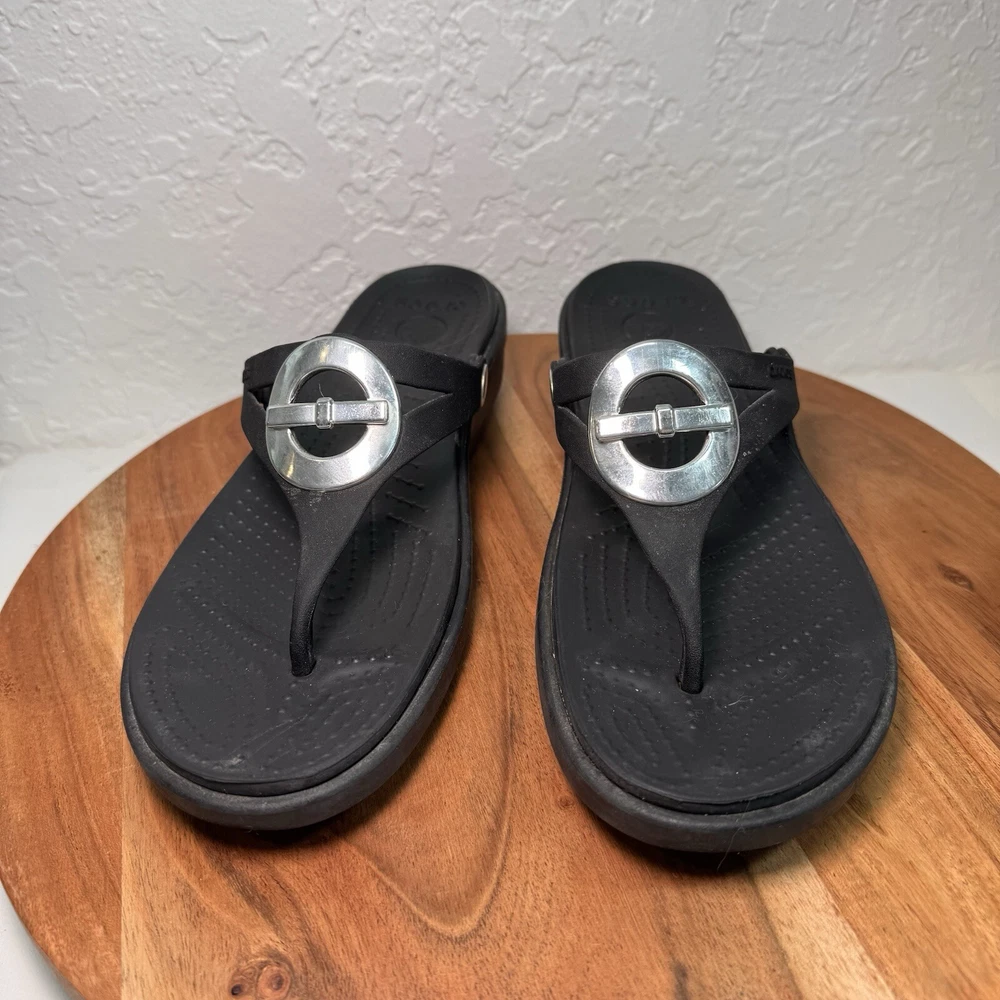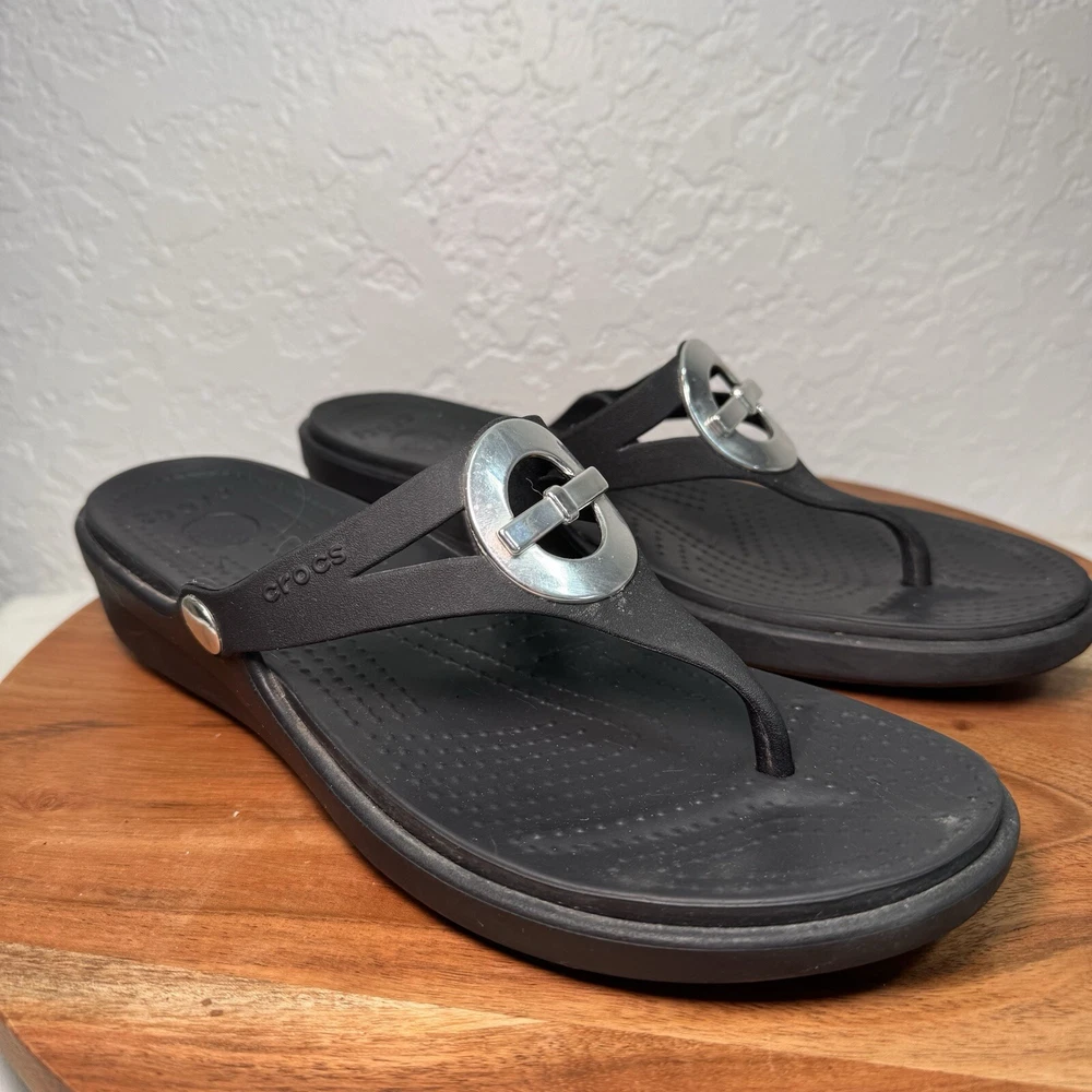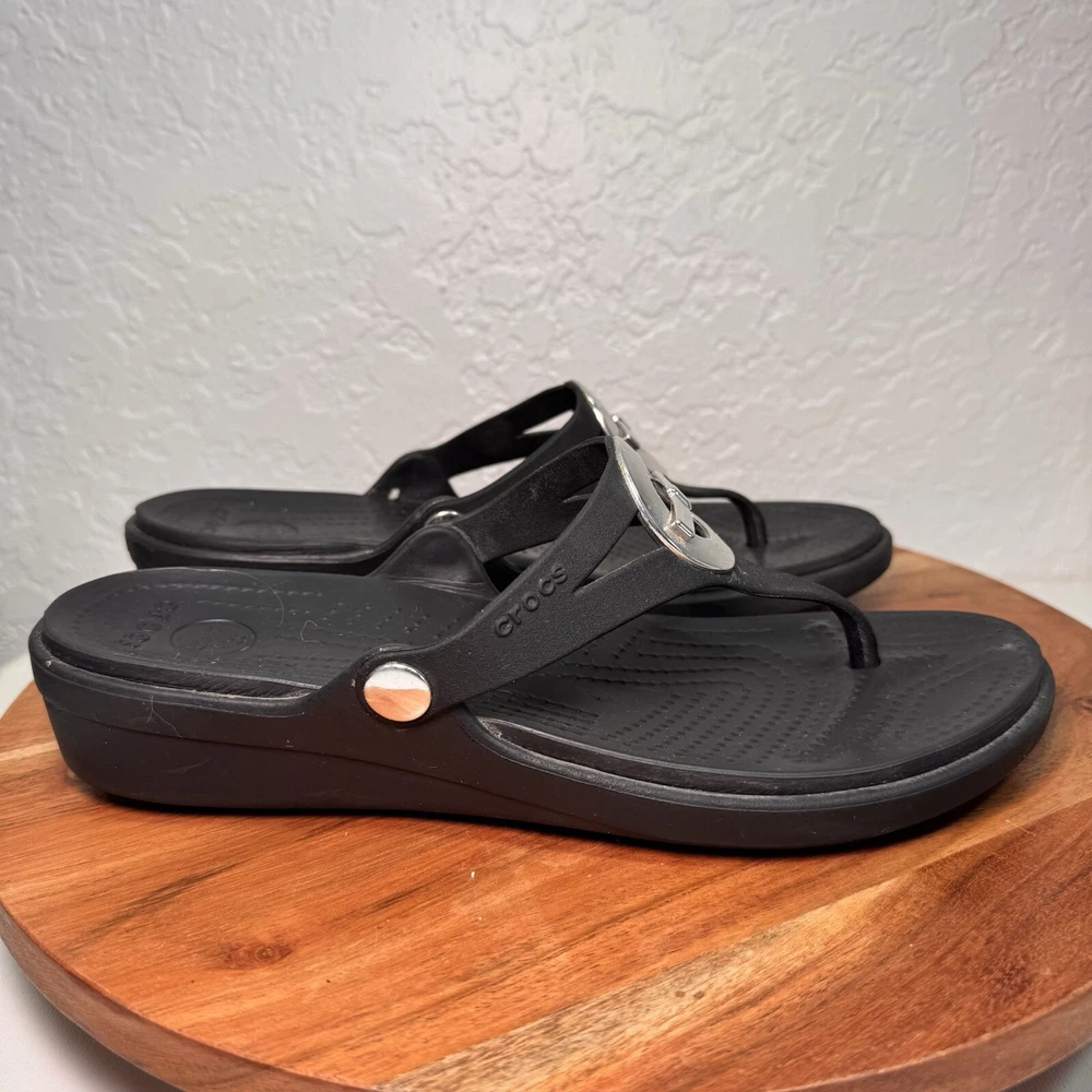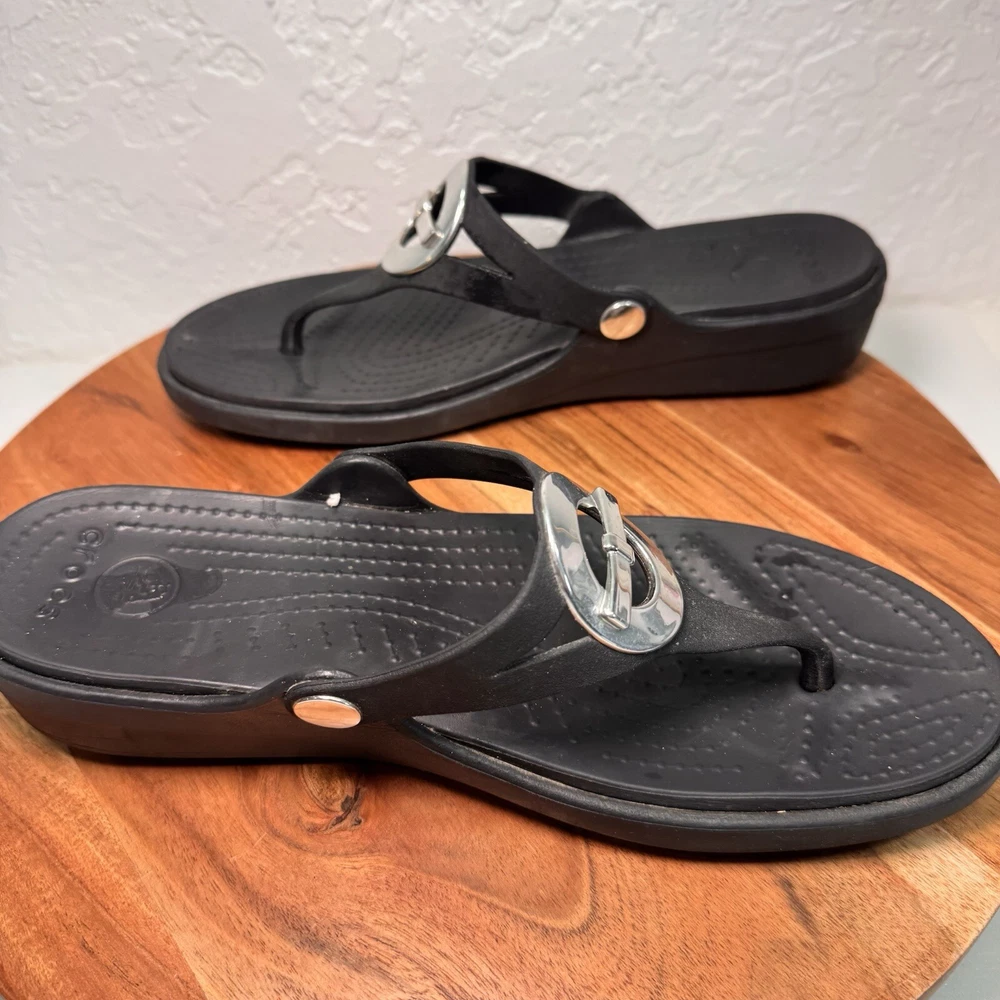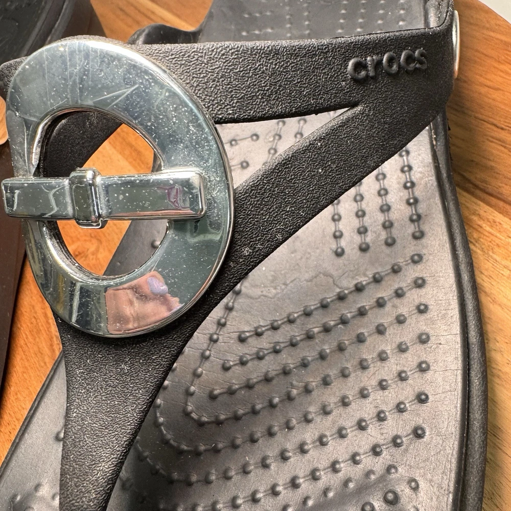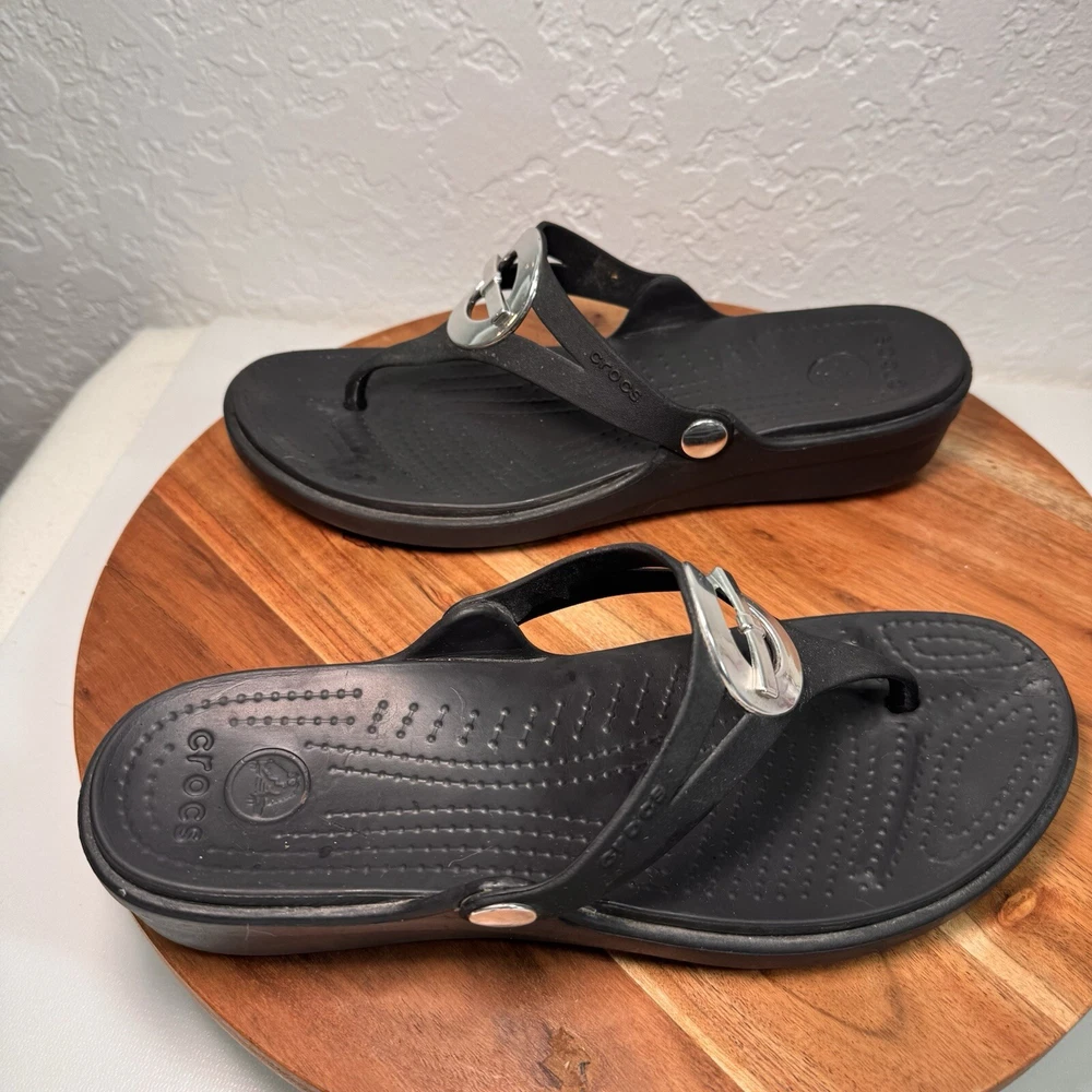 Women’s CROCS Slip On Dual Comfort Flip Flops Black Thong Sandals Womens 10 Pre-owned. No major flaws detected. One shoe has a few specs on them - they may be buffed out but they are not very visible when on. The shoes are in great shape -Crocs flip flops -Women’s 10 -Please inspect photos to approve condition. - From Smoke Free Environment - item shown is the exact item you will receive. -Open to offers -FAST SHIPPING **SHIPS FROM FLORIDA :) Crocs, flip flops, summer, casual,