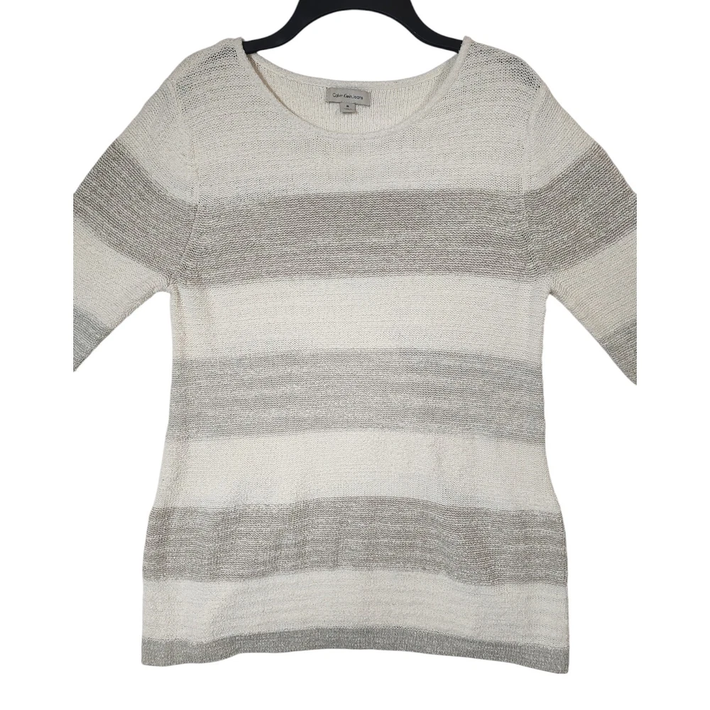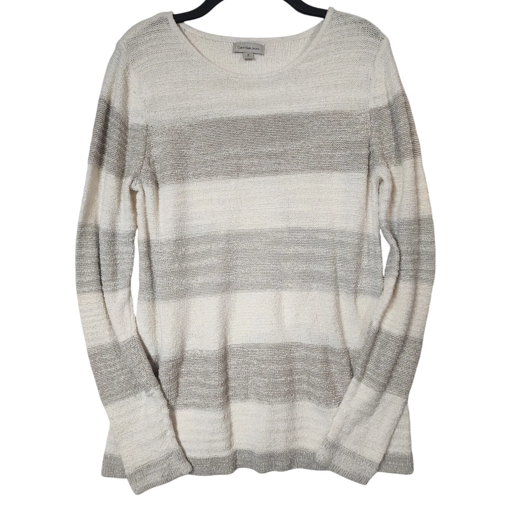 Women's Calvin Klein Jeans Long Sleeve Knit Pullover Sweater Split Back Medium MEASUREMENTS IN PHOTOS. Gently pre-owned. No flaws. Clean, smoke free and pet free. Item is as photographed. Please view and zoom into photos for details! Please visit our store to see our other items for sale!