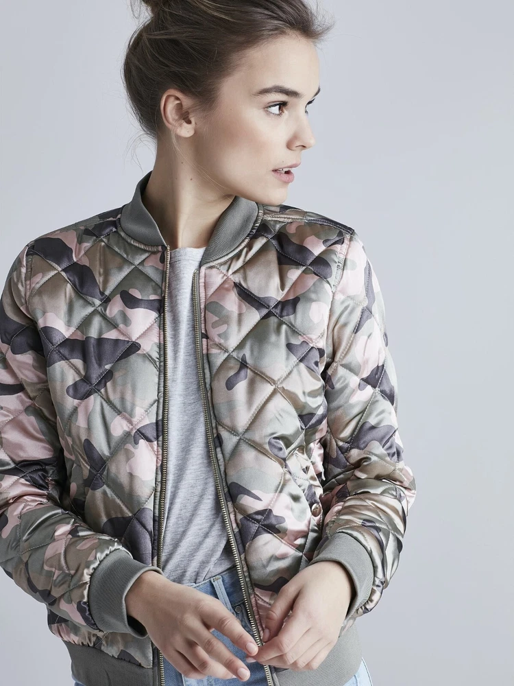 Amazing vintage 1980s / Y2K style metallic camouflage bomber jacket from Bik Bok. So many outfits can be built around this jacket. Wear with a black top, skinny ripped black jeans and chunky white trainers for a classic streetwear combo. Or for a full on military look, team with khaki cargo pants, a white crop top and black combat boots. Wear over a hoody and track pants to the gym or dress it up with a knife-pleat midi skirt, heels and a nice top for a night out. Brand new with tags. Tag size XS which is equivalent to a UK size 10. Features: Really nice shiny camo material with full lining in a light pink shade. Light padding. Full zip fastening. Stretchy ribbed trim to collar, cuffs and waistband Side pockets with poppers. Good quality jacket. RRP was €49.99 Any questions, just ask. Click here to view my store.