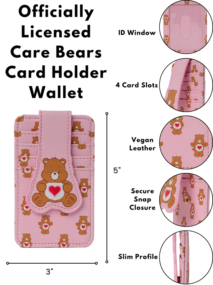 OFFICIALLY LICENSED | UNIQUE APPAREL AND ACCESSORIES | 100% AUTHENTIC | FREE STANDARD SHIPPING | HASSLE-FREE RETURNS HOME JUNIORS WOMEN PLUS SIZE MEN KIDS TOTE BAGS BACKPACKS DISNEY Womens Care Bears Card Holder Wallet Button Snap Closure Tenderheart Product Details This card holder is perfect for everyday usage! It's officially licensed and features an all over print design of Tenderheart Bear throughout the card holder. A fold over flap secured with a snap button closure to ensure your cards stay in place! The design features a cut out of Tenderheart Bear on the fold over flap, it also has an ID slot with an ID window on the back of it to ensure easy access to your ID whenever you should need it! Measuring at 5 inches tall and 3 inches wide it fits in most pockets and bags so you can take it everywhere with you! Womens Care Bears Card Holder Wallet Button Snap Closure. This woman's Care Bear card wallet features an all-over print of Tenderheart Bear. Snap closure featuring Tenderheart Bear secures cards from slipping out. Wallet contains four (4) card holder slots on one side and clear window pocket for ID on the other side. Made of faux leather / Polyurethane. Card holder measures 5” tall x 3” wide. Officially licensed Care Bears merchandise. Brand Care Bears Color Yellow Material Faux Leather Style Wristlet Height 5.000 Length 3.000 Width 0.500 C2VAC13AJ CLICK HERE TO BROWSE ALL OUR ITEMS OR SHOP BY CATEGORY BELOW: MEN SHOP NOW WOMEN SHOP NOW PLUS SIZE SHOP NOW KIDS SHOP NOW BAGS & ACCESSORIES SHOP NOW SHOP BY BRANDS Quick Links Payment Details Shipping Details Returns About Us Contact Us Store Home Add to Favorites New Arrivals Ending Soon Feedback Payment Options Secure Payments by Store Newsletter Add Store to your Favorites and receive email newsletters about new items and special promotions! Sign Up Now Copyright © Open and Clothing
