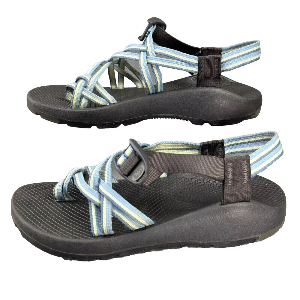 These Chaco Vibram sandals are women's size 9 in blue/white, designed for hiking, trails, and water activities. The sandals feature a strappy style with adjustable buckle closure for comfort. They have a low heel height and a flat heel style, making them suitable for casual and activewear occasions. The sandals are made of nylon material and have standard shoe width, providing a comfortable fit for outdoor adventures. Great preowned condition. ⭐Smoke and pet-free ⭐Examine photos carefully as they are part of the description. ⭐If you need more measurements or images, do not hesitate to contact us. ⭐Ships quickly - same or next business day!
