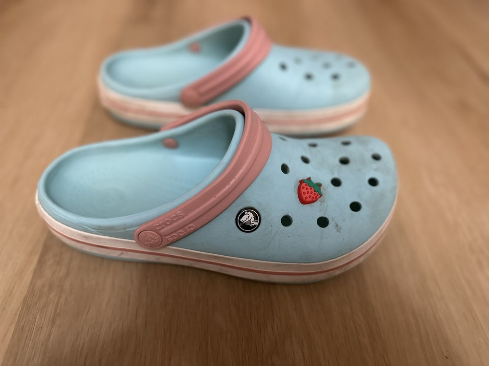 This pair of Crocs Classic clogs for women are perfect for those who prioritize comfort and practicality. Made with lightweight and breathable Croslite material, these clogs feature a closed-toe design and slip-on closure for easy wear. The multicolor blue and pink design with strap and logo accents add a touch of style to these casual shoes. Ideal for travel, activewear, and casual occasions, these clogs are suitable for walking, school, and beach activities. The flat heel style and standard shoe width provide a comfortable fit, while the rubber outsole, insole, and lining ensure durability and support. These Crocs Comfort Slide clogs are a must-have addition to any woman's shoe collection.