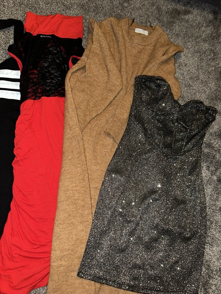 This women's clothing bundle includes a mix of brands and styles, perfect for any occasion. The set includes a variety of clothing, all in the size above. The clothing is made from a blend of fabrics, with a blended fabric type. The pieces are a variety of colours and are suitable for autumn, winter, summer, and spring, making them versatile for any season. The set is ideal for a variety of occasions, providing multiple options for any wardrobe. The outfit is from various brands. This set is perfect for women who want to feel confident and stylish. These are bargain bundles at a low price, more listed. NOTE These are used so please don’t expect perfection, many items listed with offers. Feel free to have a nosey. If you have any Q’s please don’t hesitate to get in touch Thank you