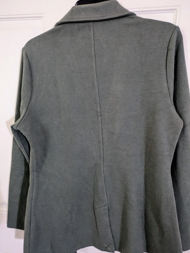 Crafted for the modern woman, the Matty M cardigan offers a seamless blend of comfort and style. Embrace the simplicity of its solid olive green hue, a versatile choice that pairs effortlessly with any outfit. This long-sleeved coat, tailored in a regular size small, is designed to provide a flattering fit while ensuring warmth and ease of movement. Ideal for layering, the coat's type caters to both on the go, casual and semi-formal settings. Its unbranded design speaks to its understated elegance, making it a timeless addition to your wardrobe. Whether you're out for a walk or headed to a meeting, this coat promises to be a go-to piece in your collection.