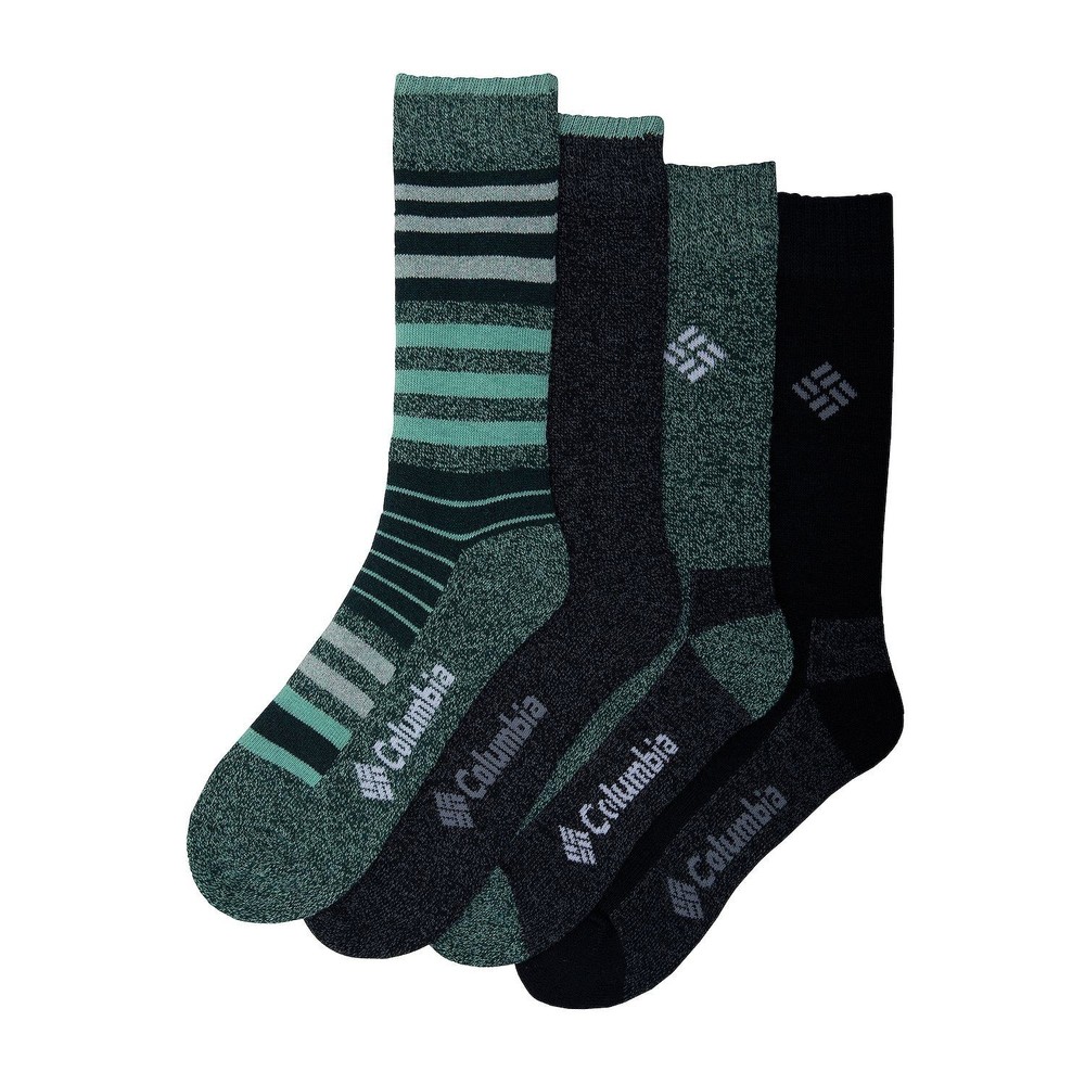 PRODUCT FEATURES Includes 4 pairs of socks Medium weight Elastic arch support for a secure fit Full cushion with moisture wicking fibers for all day comfort Retains heat Ribbed cuff FIT & SIZING Sock size 9-11 fits shoe size 6-11 Crew length FABRIC & CARE Polyester, cotton, rayon, spandex Machine wash Imported