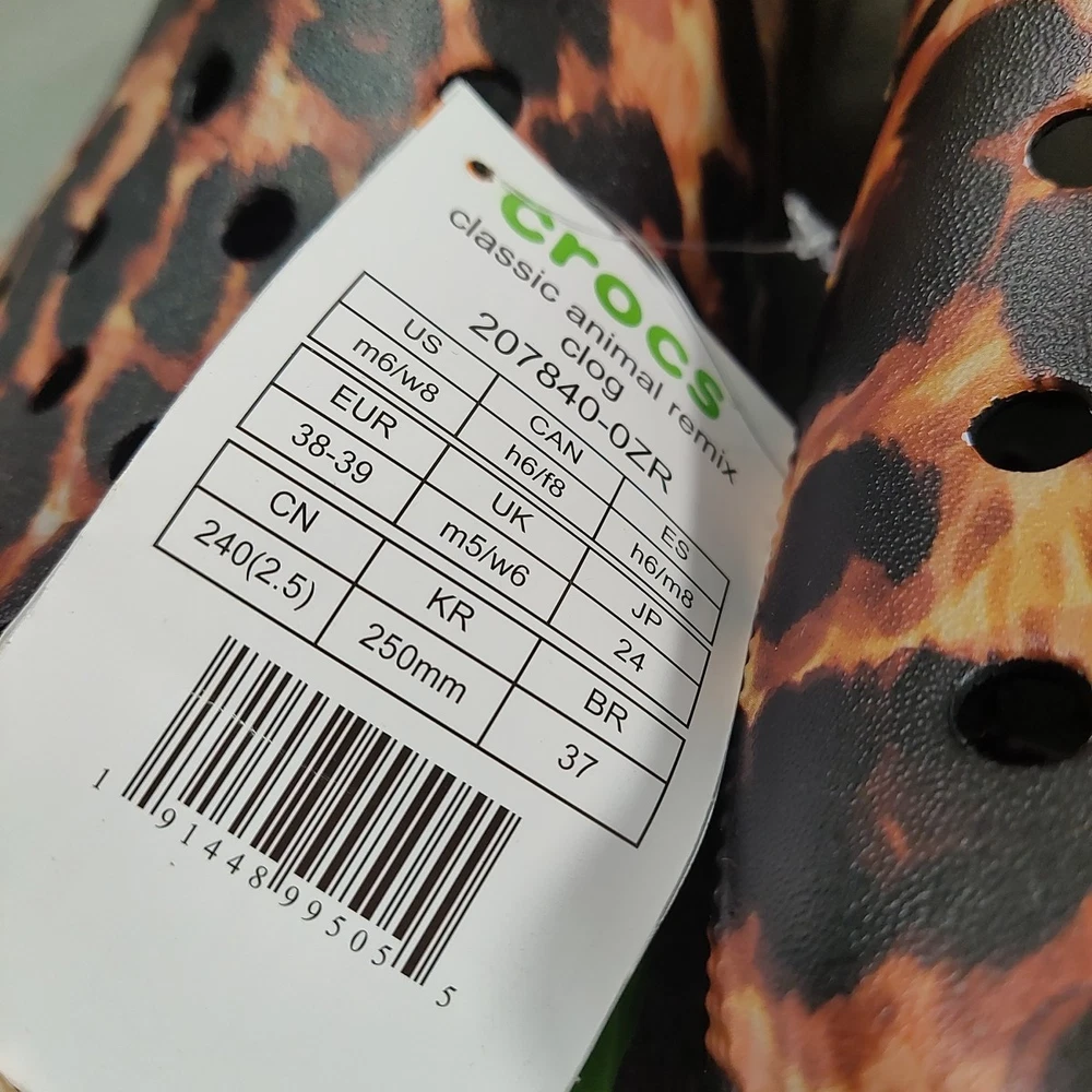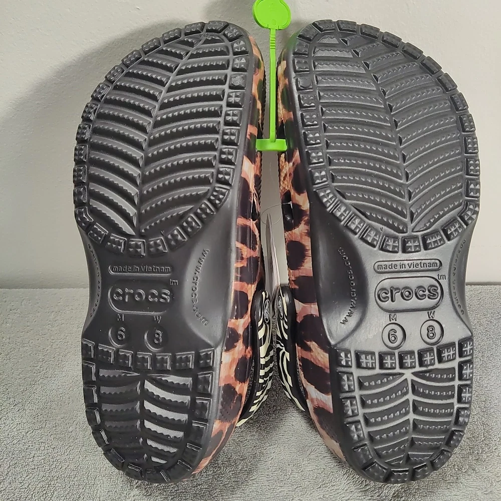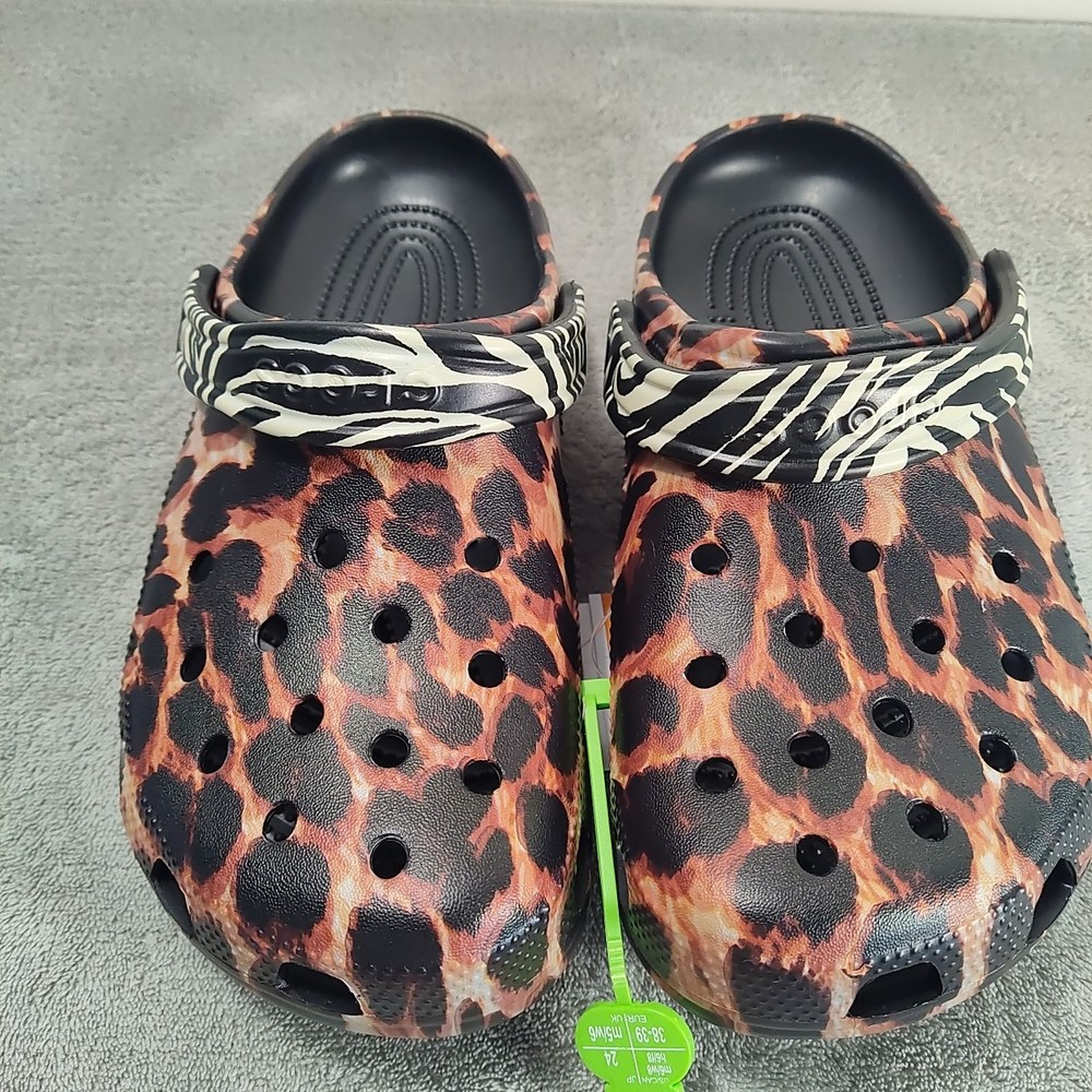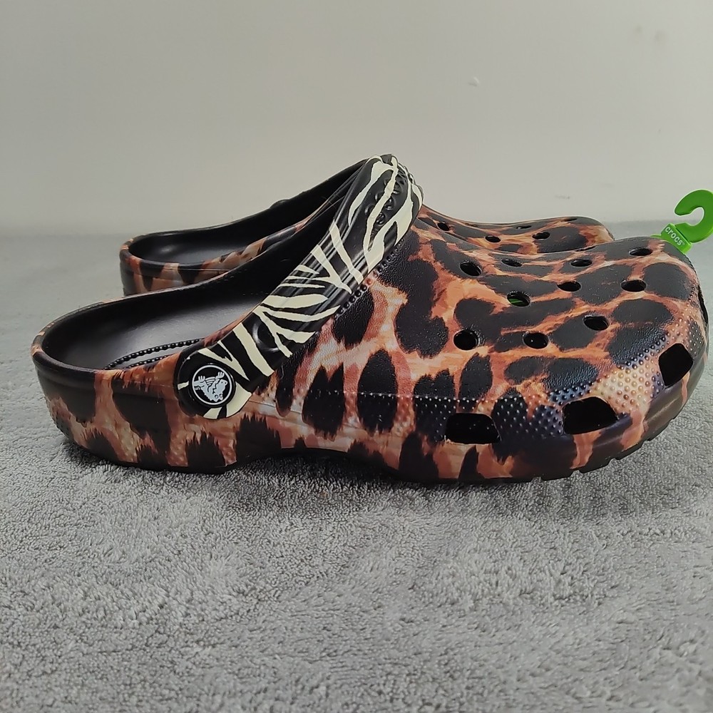 Crocs Women's Classic Animal Remix Clog - Black/Multi Animal -Size 8. Shipped with USPS Ground Advantage.