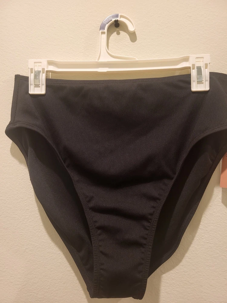 $ 7.53Women's Curvy Fit Ribbed High Waist Cheeky Bikini Bottom - Shade & Shore Black L